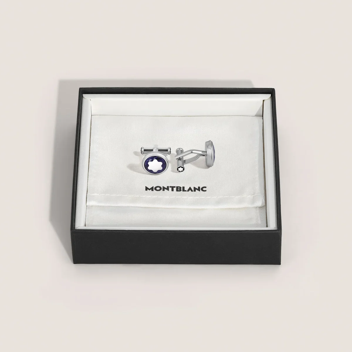 Boutons de manchette en acier dédiés à la collection Masters of Art Hommage à Pierre-Auguste Renoir. Ce bijou est orné de sodalite et de nacre.