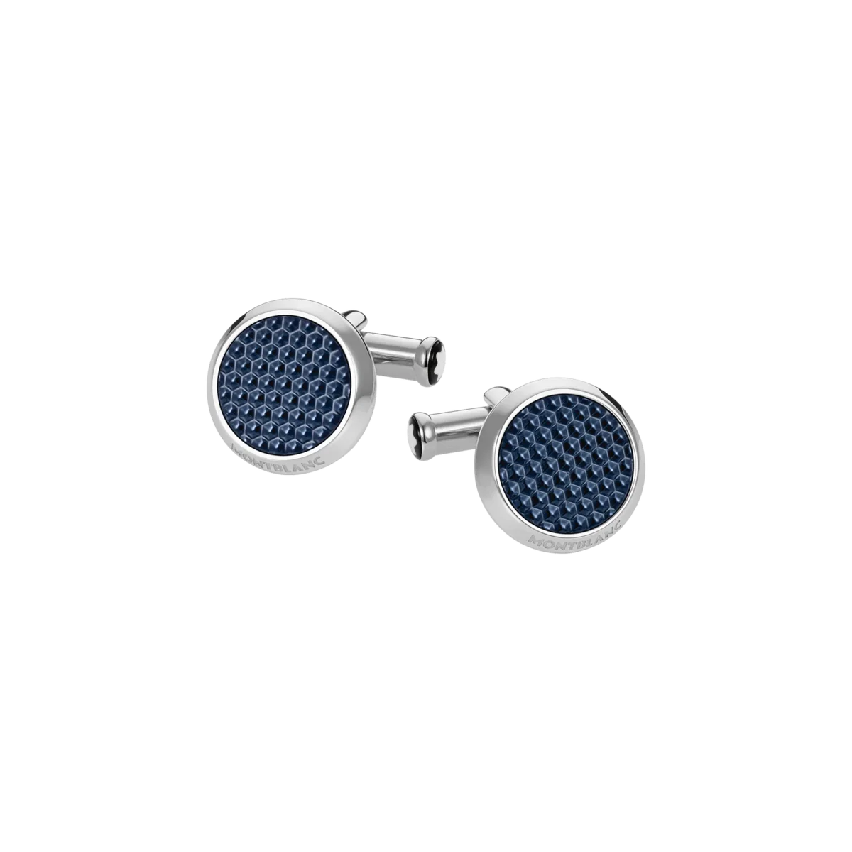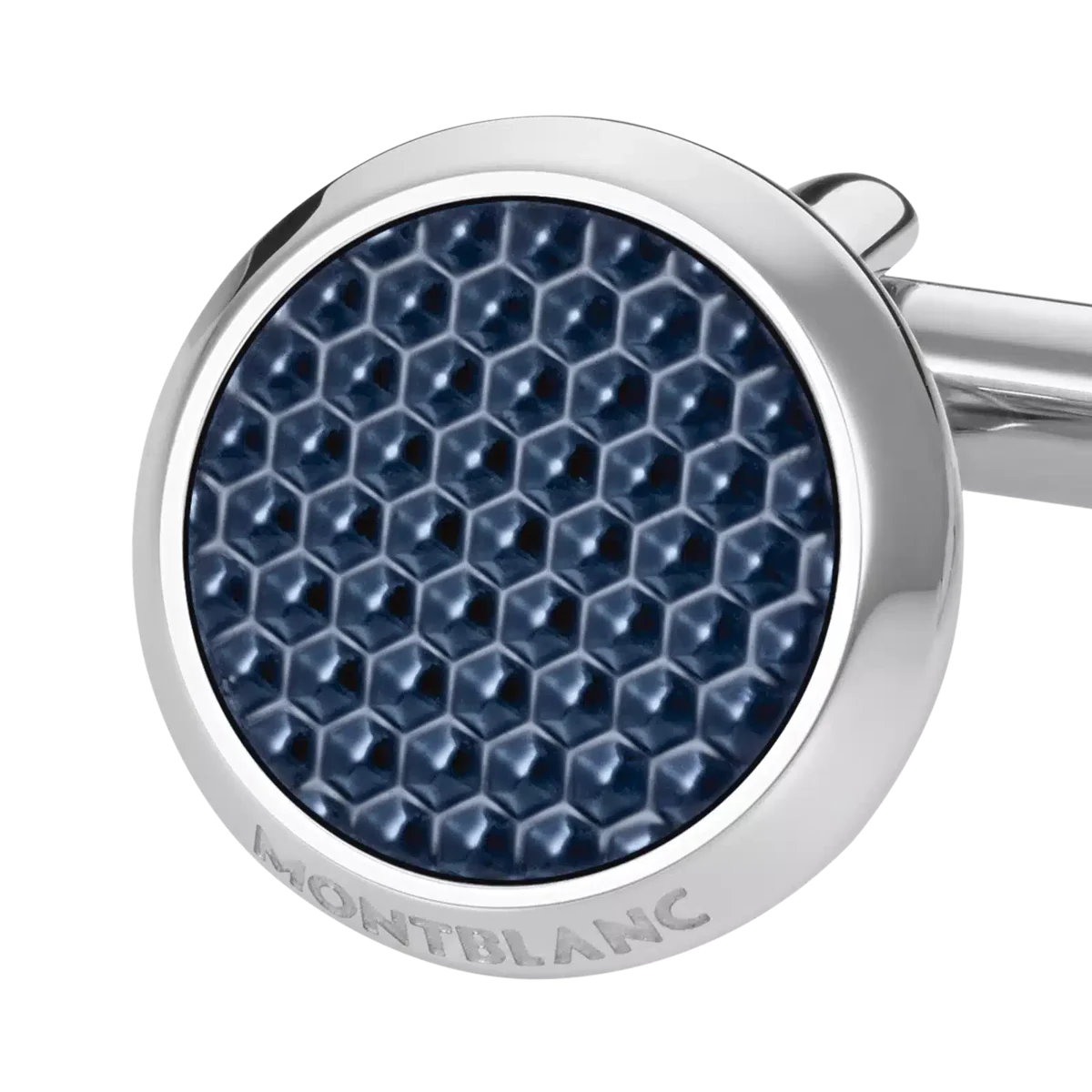 Les boutons de manchette Meisterstück célèbrent un style sobre et élégant. Inspirés des instruments d’écriture Montblanc Meisterstück, leur forme ronde intemporelle en acier inoxydable avec incrustation de laque bleue à motif hexagonal en fait un bijou portant la signature puissante de Montblanc.
