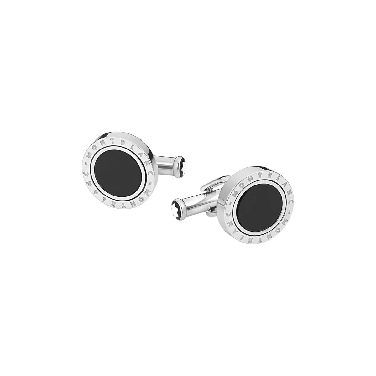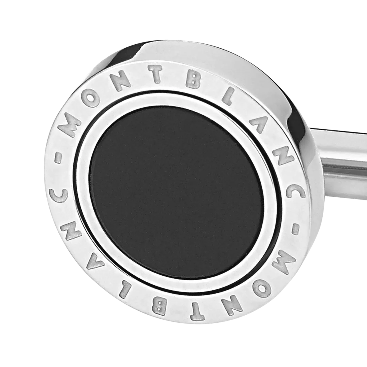 Les boutons de manchette Meisterstück célèbrent un style sobre et élégant. Inspirés des instruments d’écriture Montblanc Meisterstück, leur forme ronde intemporelle en acier inoxydable avec incrustation d’onyx et anneau rotatif en fait un bijou à la signature Montblanc puissante.