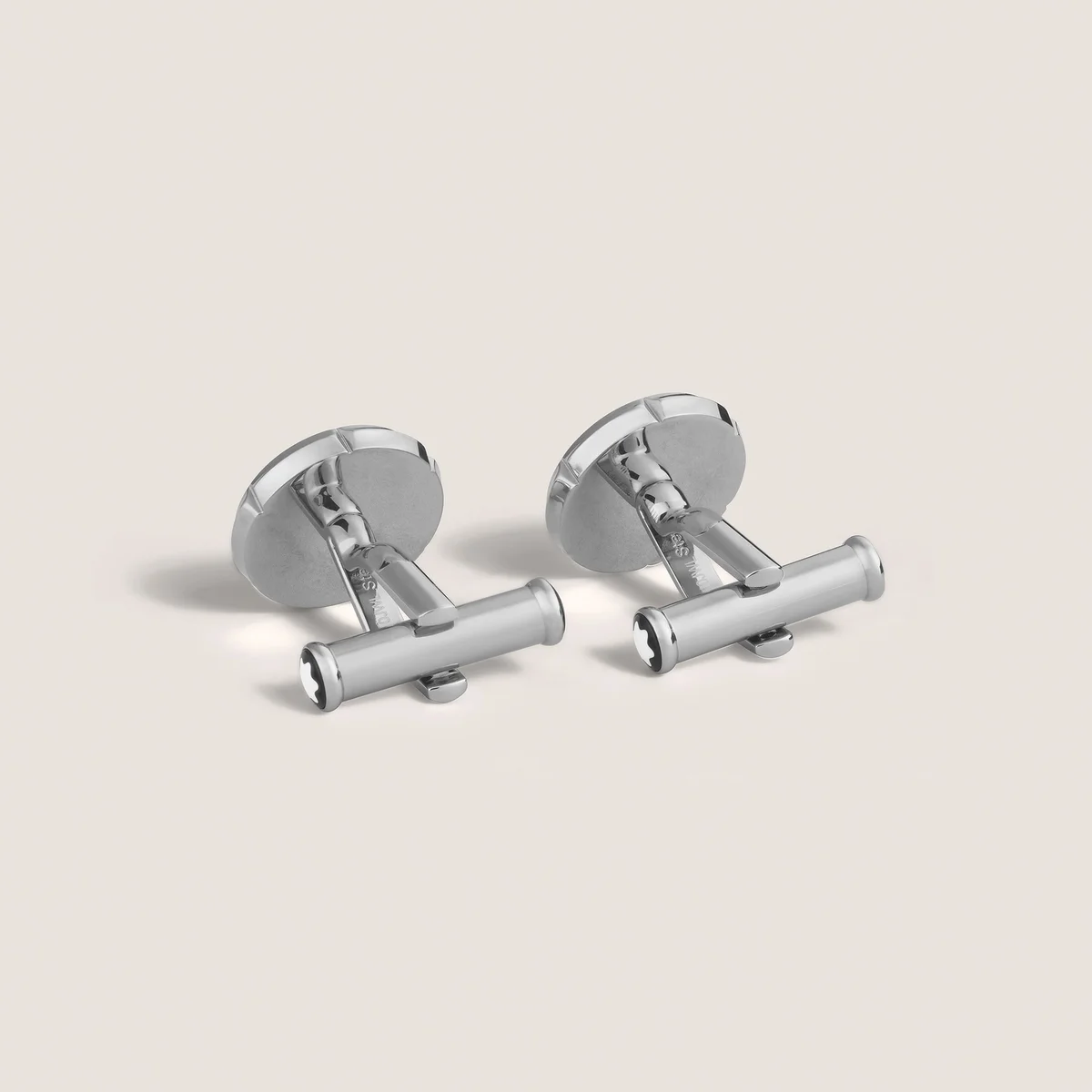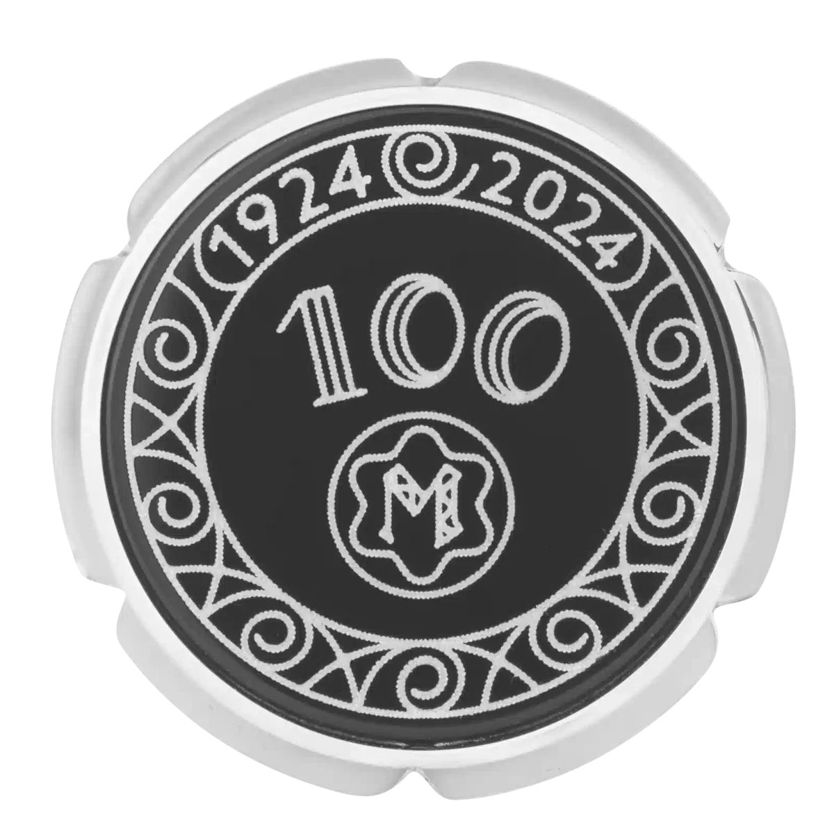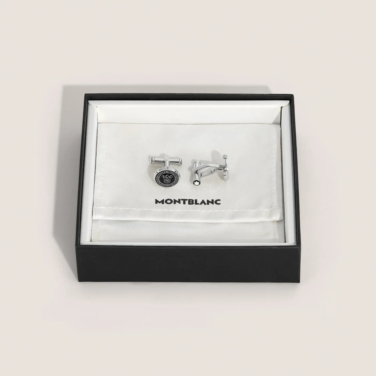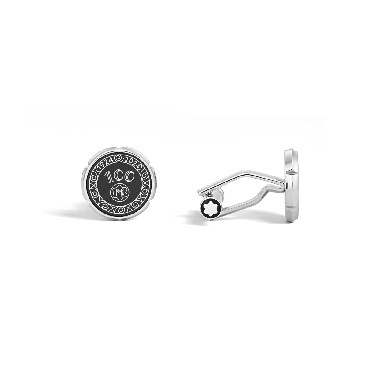 Boutons de manchette en acier inoxydable avec décor Meisterstück 100 ans anniversaire en laque noire incrustée