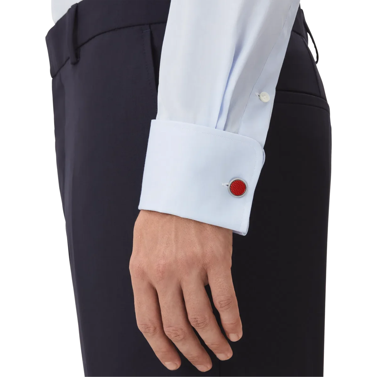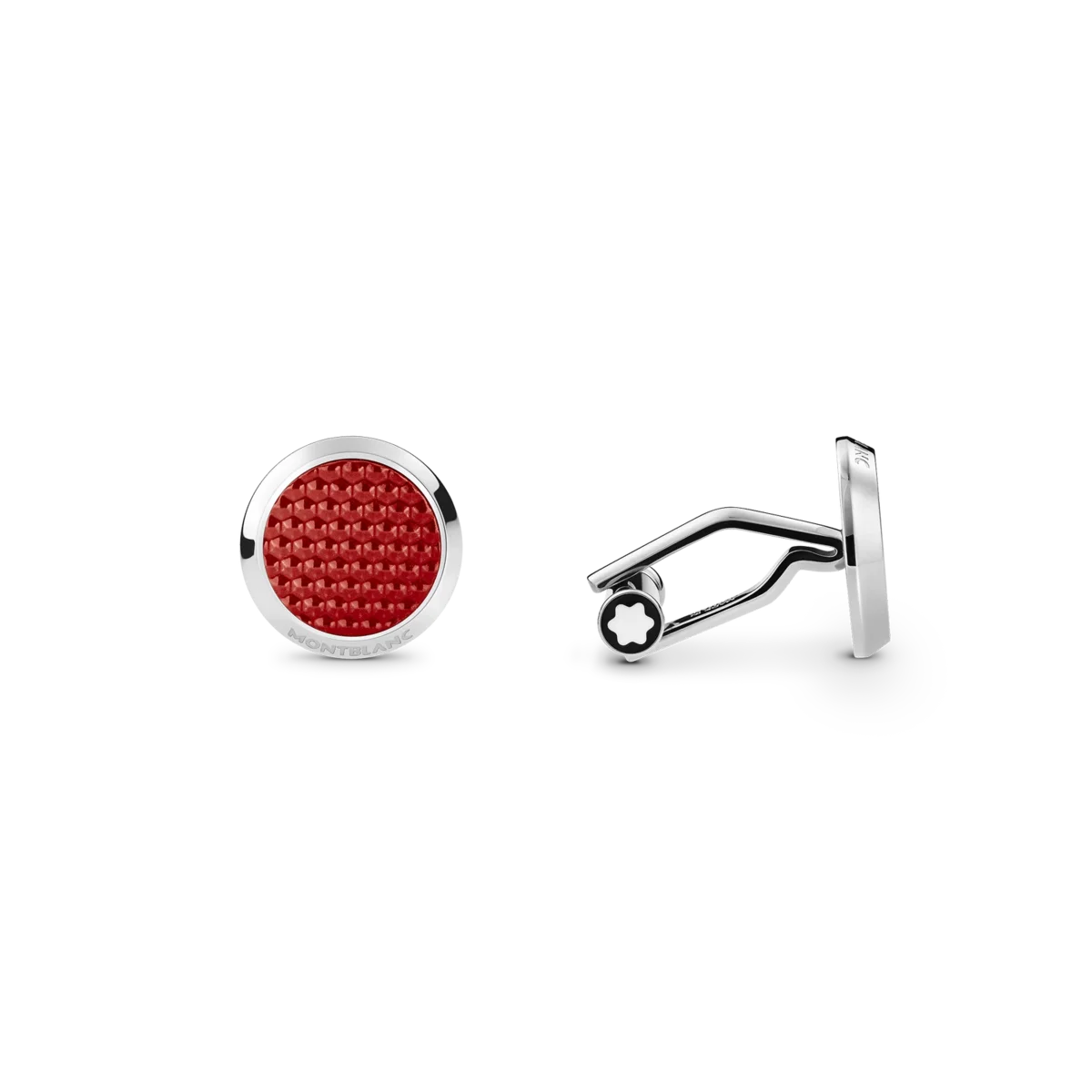 Boutons de manchette en acier inoxydable avec incrustation en laque rouge à motif hexagonal.