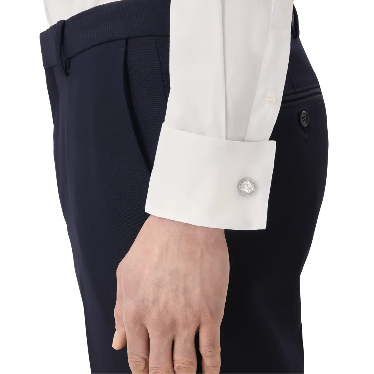 Les boutons de manchette sont en acier inoxydable et présentent une gravure qui rappelle le motif figurant au dos du boîtier de la montre Montblanc 1858 Ice Sea.