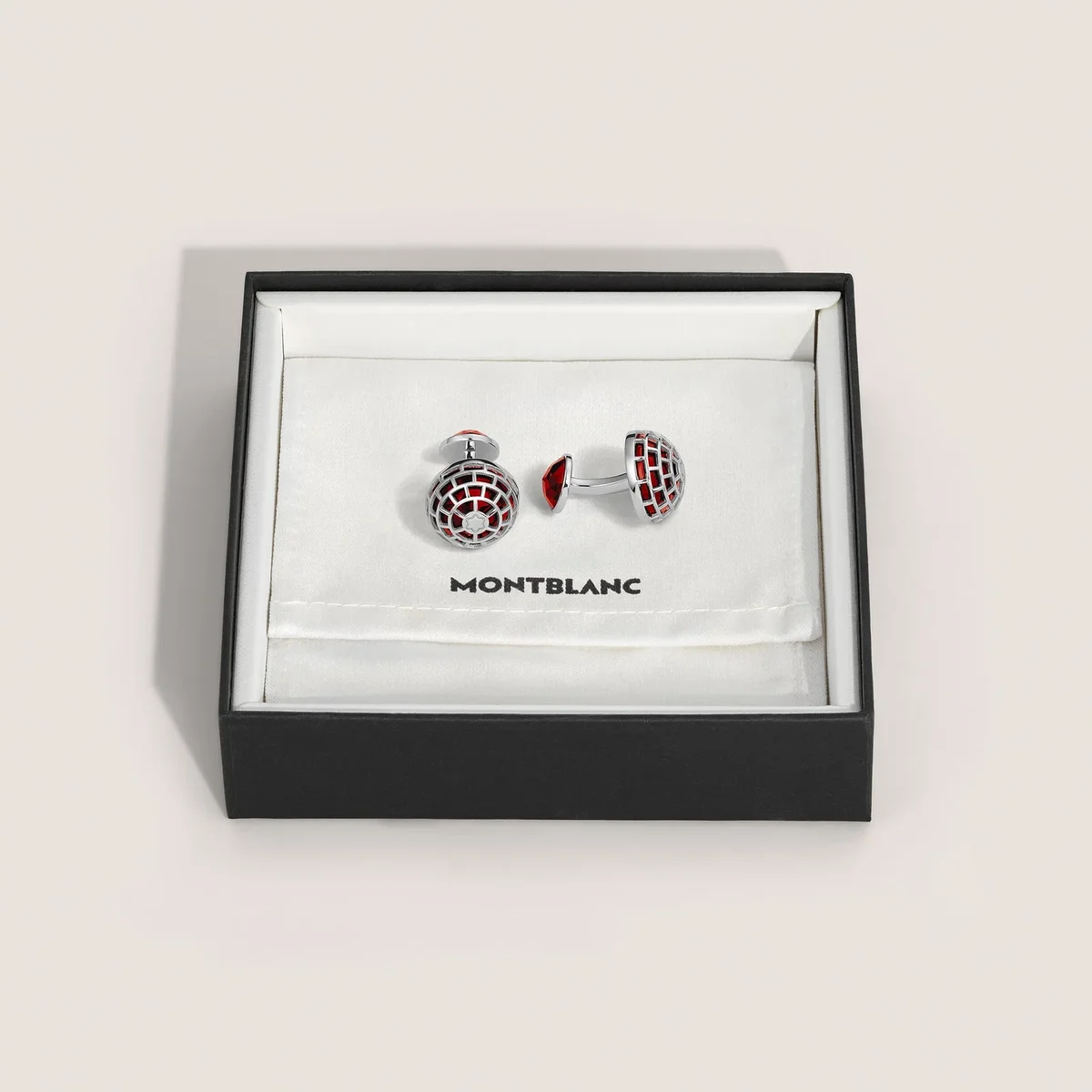 Ces boutons de manchette Montblanc Meisterstück sont en argent et ornés d’une pierre de jaspe rouge sertie dans un dôme contemporain, rehaussé de l’emblème Montblanc gravé. Le dos de la pièce est également orné d’une pierre de jaspe rouge.