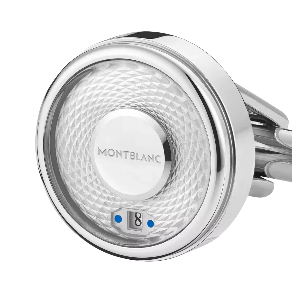 Ces boutons de manchette rendent hommage au design de la montre Montblanc Star Legacy Nicolas Rieussec Chronograph. La plaque centrale en acier inoxydable est décorée d’un motif guilloché gravé et du nom de la marque Montblanc, tandis qu’une fonction date est affichée en tournant la bague extérieure autour de la plaque centrale.