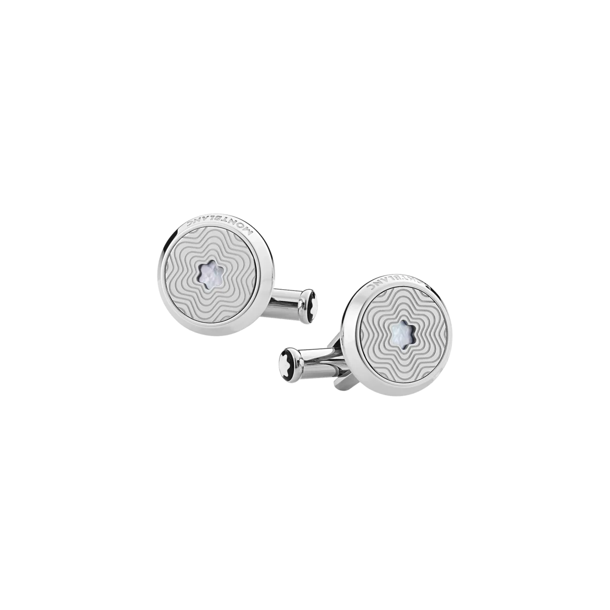 Les boutons de manchette ronds Montblanc Star en acier inoxydable avec motif étoile éclatante et emblème en nacre représentant un sommet enneigé s’inspirent des codes de la Maison. Une collection qui présente l’emblème Montblanc sous différentes interprétations.