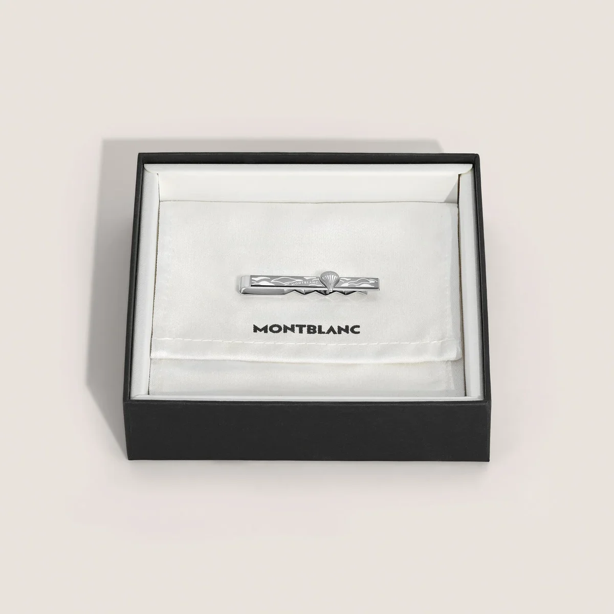 Pince à cravate en acier dédiée à la collection Meisterstück Around the World in 80 Days. Le design est orné d’une représentation d’une montgolfière, en référence au premier roman d’aventure de Jules Verne.