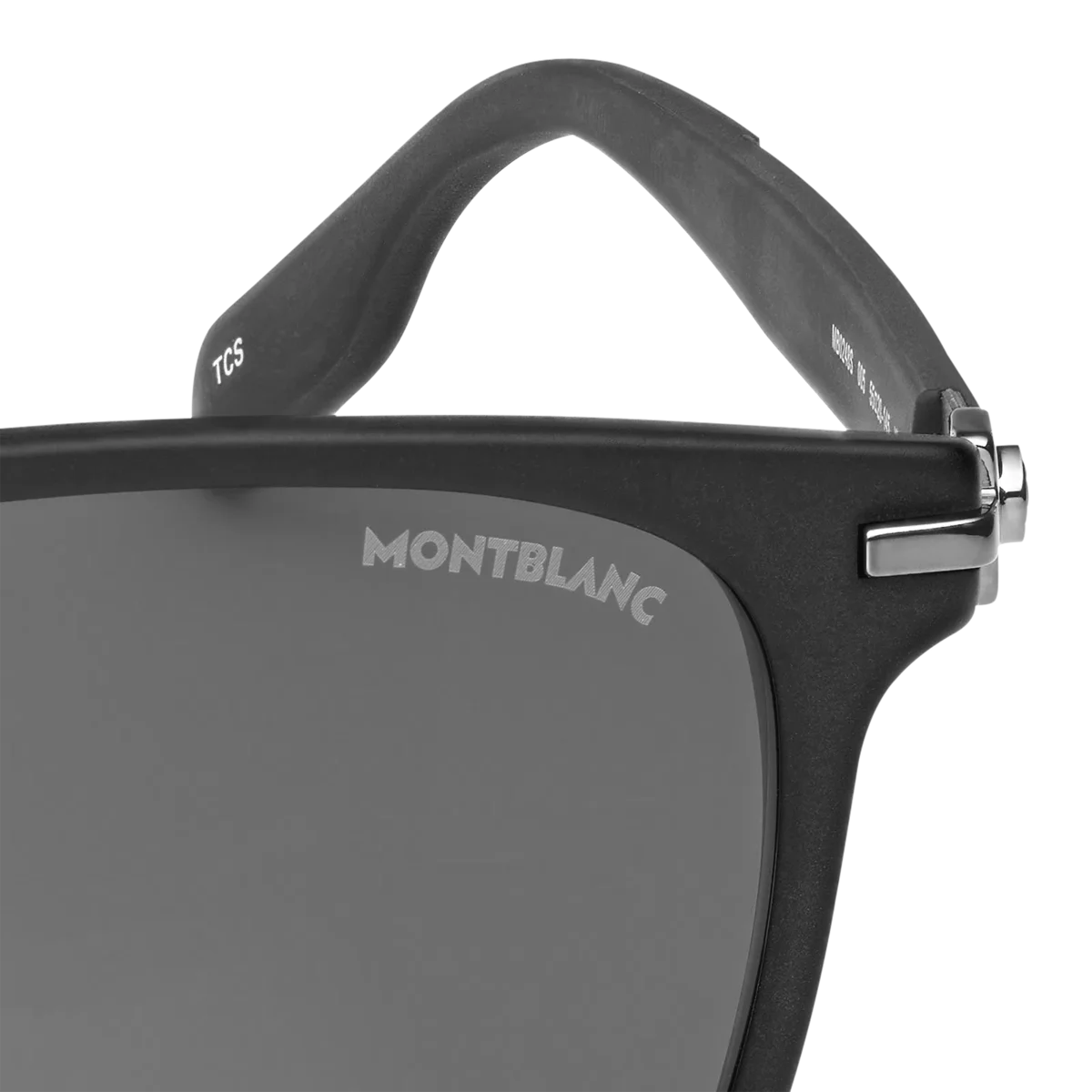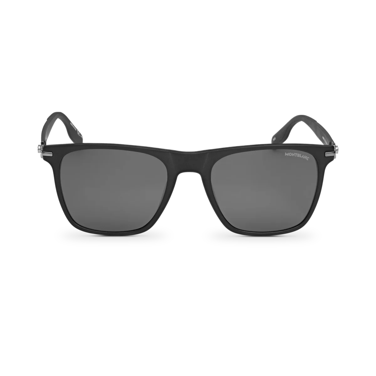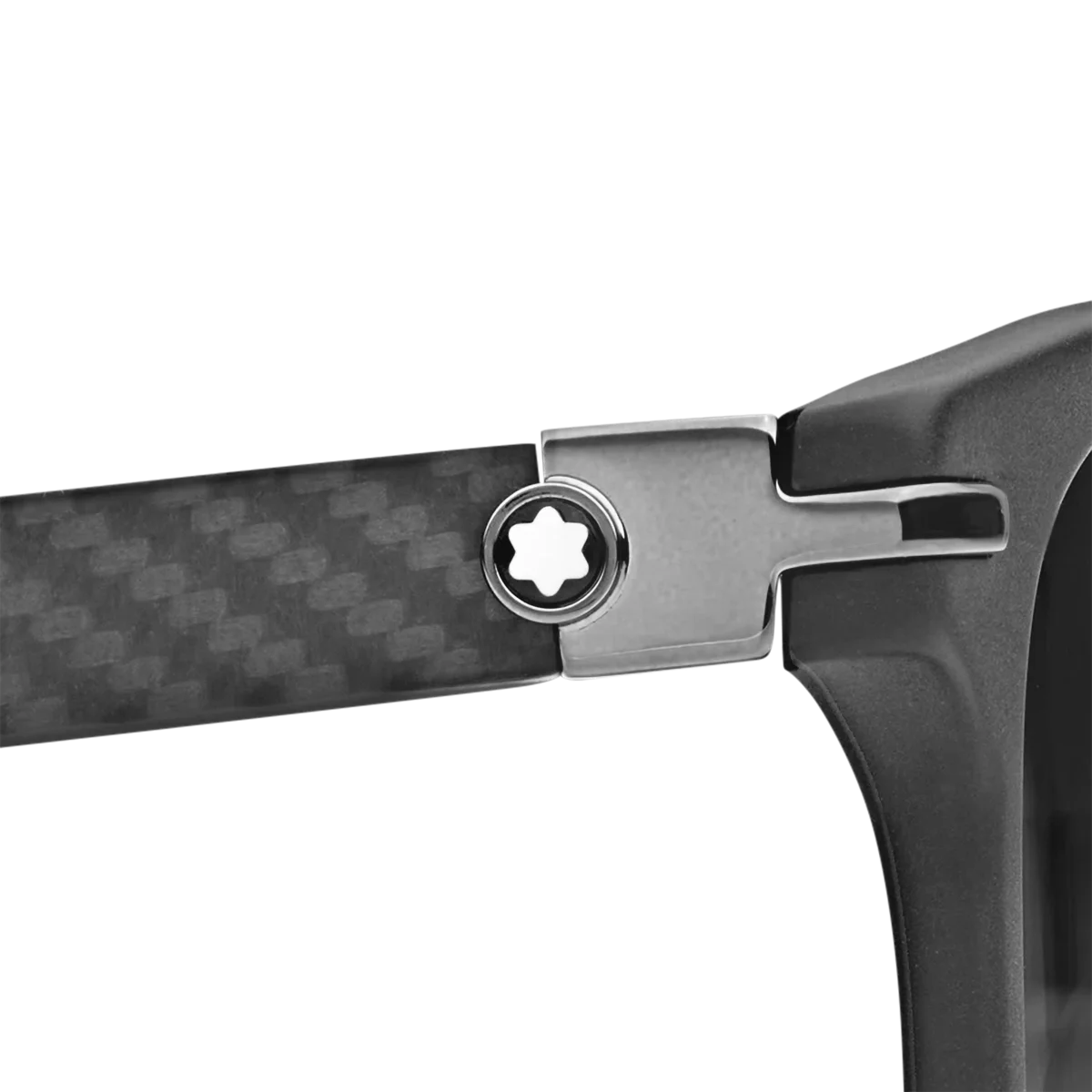 Ces lunettes de soleil de style carré ont une monture en acétate de couleur noire et des verres gris. Les embouts des branches sont de couleur grise, assortis à la couleur des verres. Les branches sont enrichies de fibre de carbone et de caoutchouc, ce qui améliore leur flexibilité et les rend plus légères.