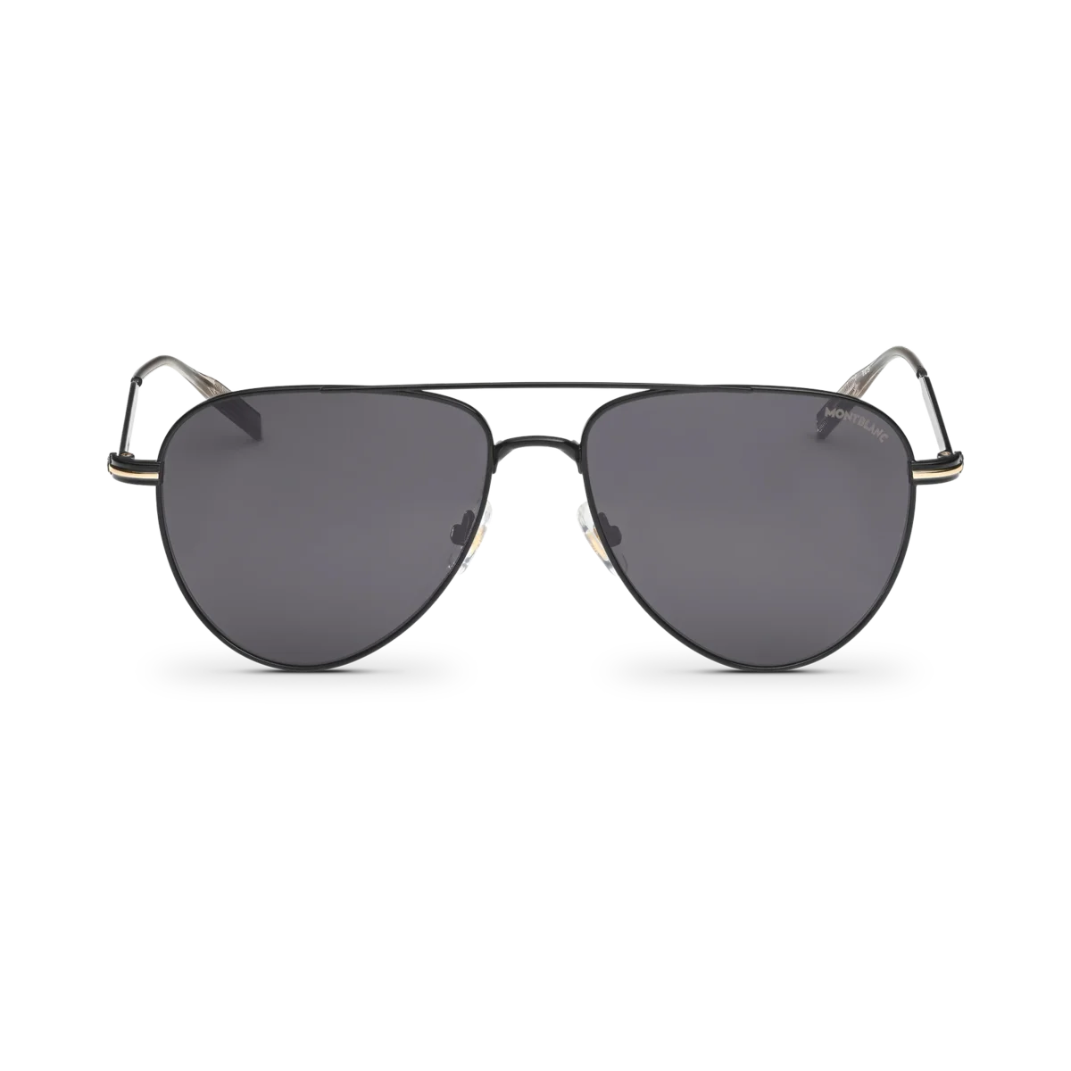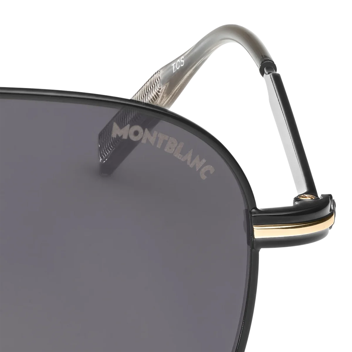 Découvrez tous les détails des lunettes de soleil carrées avec monture métallique noire. Achetez en ligne sur la boutique officielle Montblanc.