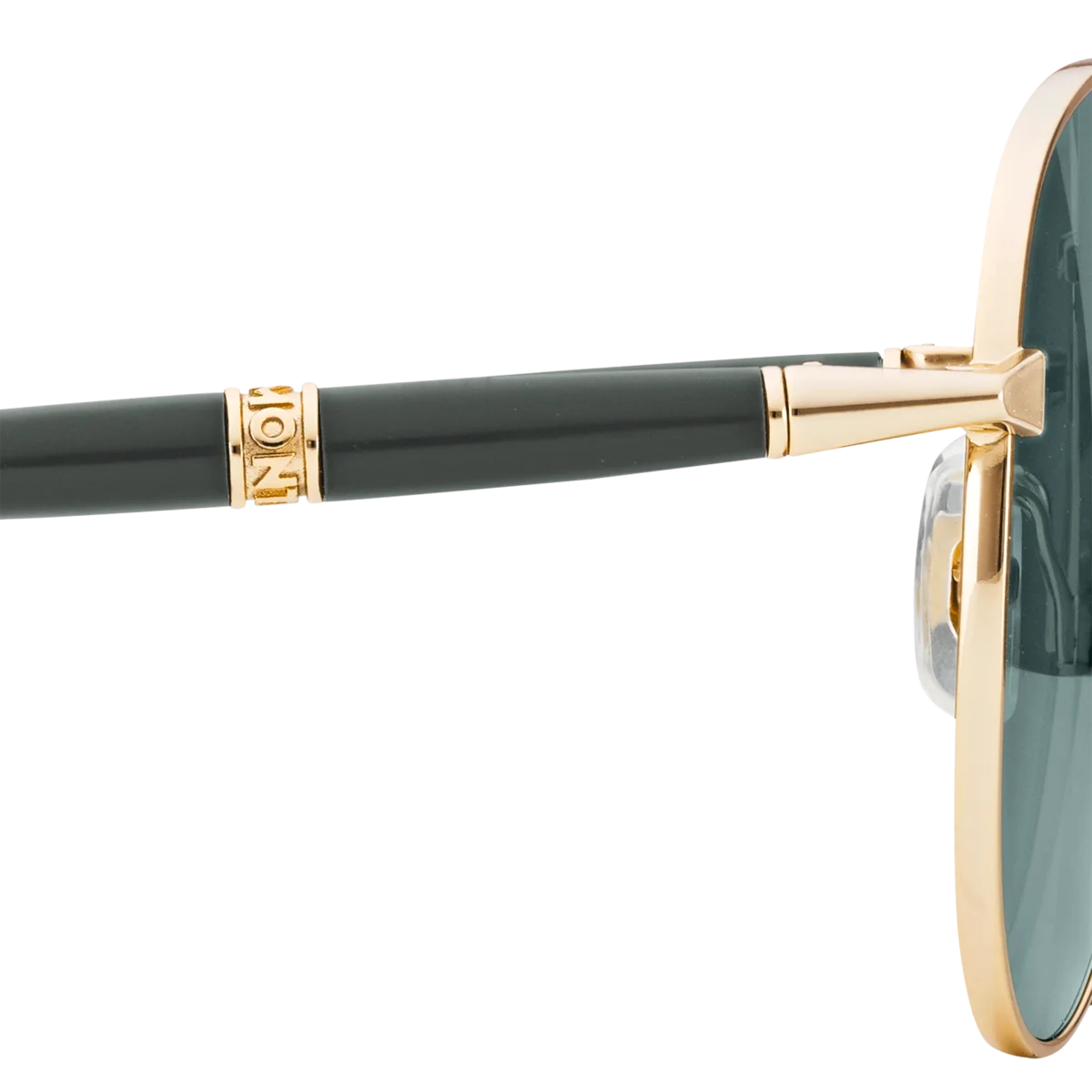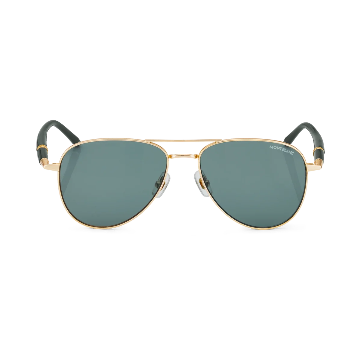 Ces lunettes de soleil carrées sont dotées d’une monture métallique dorée et de verres verts. Elles présentent un double pont métallique sur le devant. Les branches tubulaires inspirées des instruments d’écriture Meisterstück sont rehaussées d’un détail à trois anneaux. Le logo Montblanc est gravé au laser sur le verre gauche et un détail en émail noir est incrusté sur les embouts.