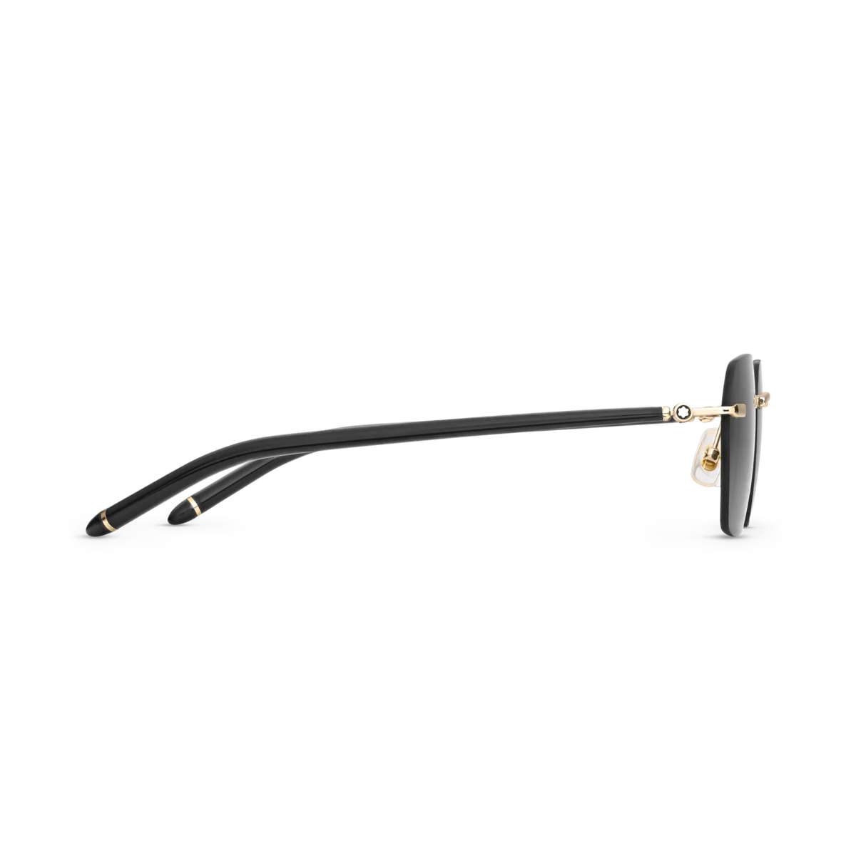 Ces lunettes de soleil légères sans monture de style carré sont dotées d’une monture en métal doré et de verres gris. Les branches tubulaires inspirées des instruments d’écriture Meisterstück sont ornées d’un détail à trois anneaux. Le logo Montblanc est gravé au laser sur le verre gauche et le logo Snowcap est incrusté sur la branche. Le motif antidérapant est gravé au laser à l’intérieur des embouts des branches pour plus de confort.
