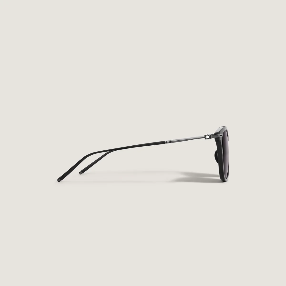 Ces lunettes de soleil de style rectangulaire ont une monture en acétate de couleur noire et des verres gris. Les branches tubulaires inspirées des instruments d’écriture Meisterstück sont rehaussées d’un détail à 3 anneaux. Le logo Montblanc est gravé au laser sur le verre gauche et un détail en émail noir est incrusté sur les embouts.