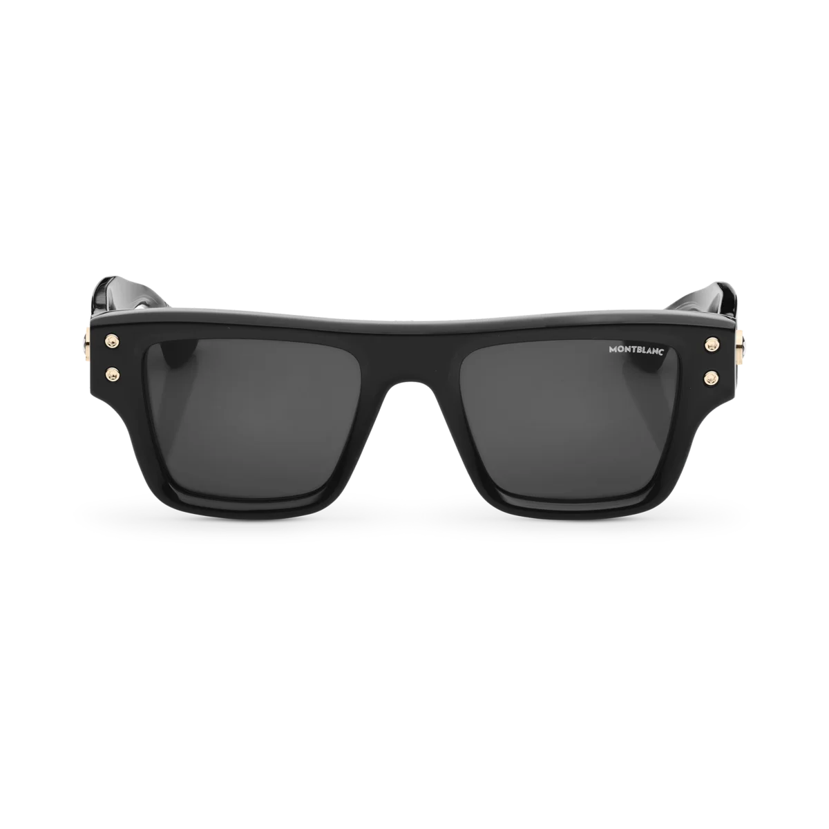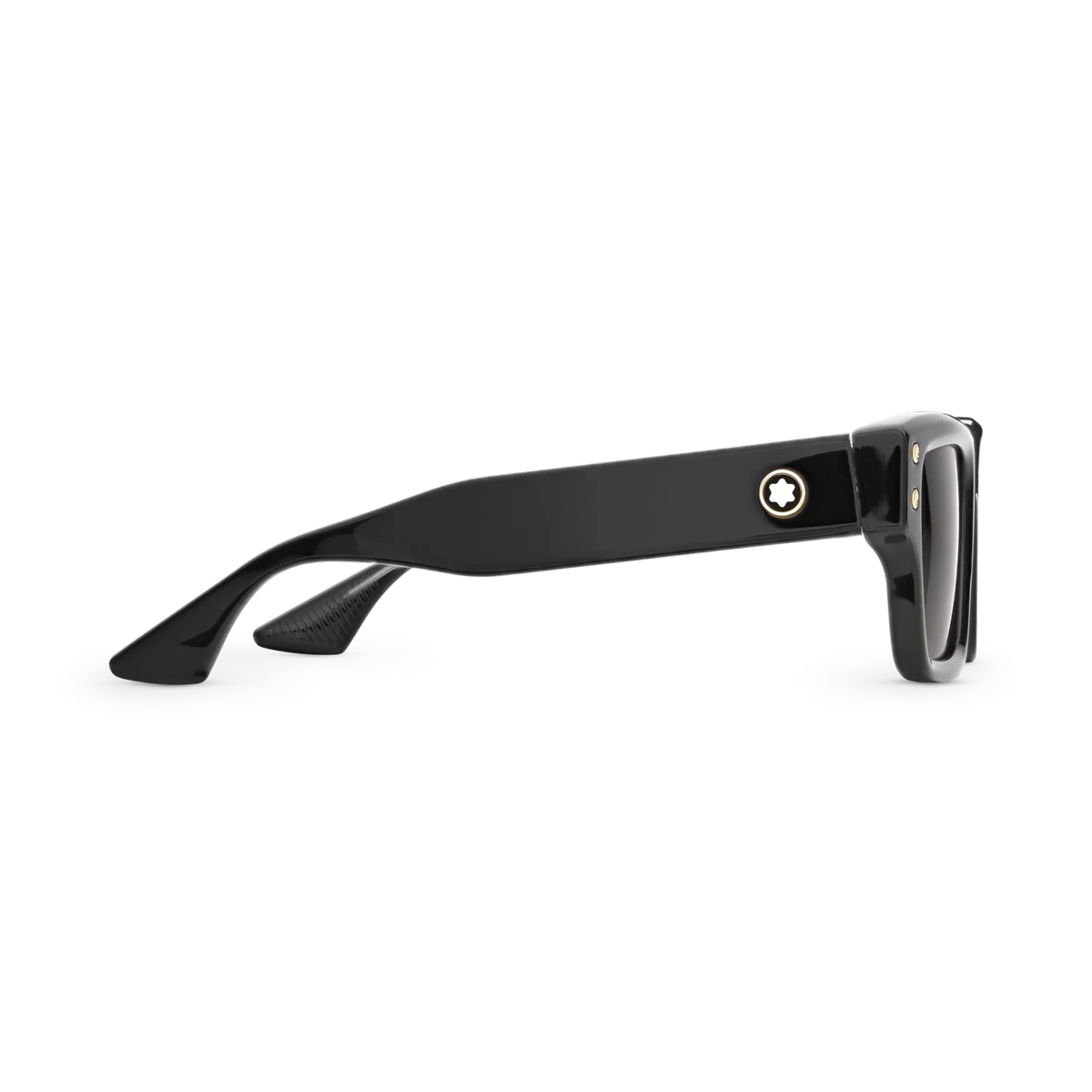 Découvrez tous les détails des lunettes de soleil rectangulaires avec monture en acétate noir. Achetez en ligne sur la boutique officielle Montblanc.