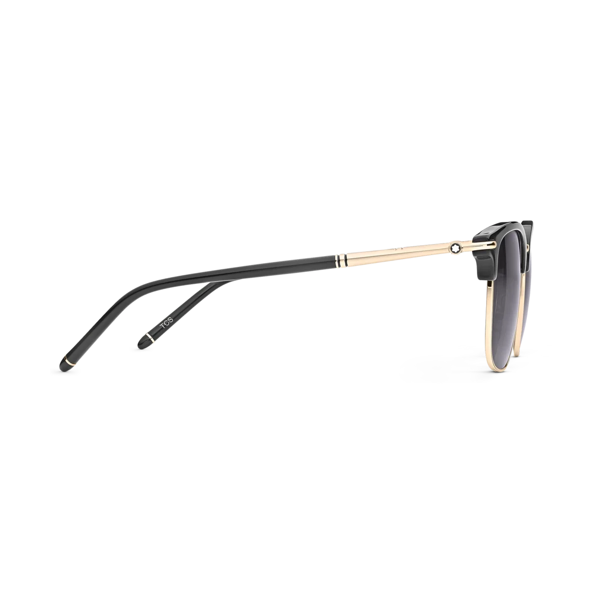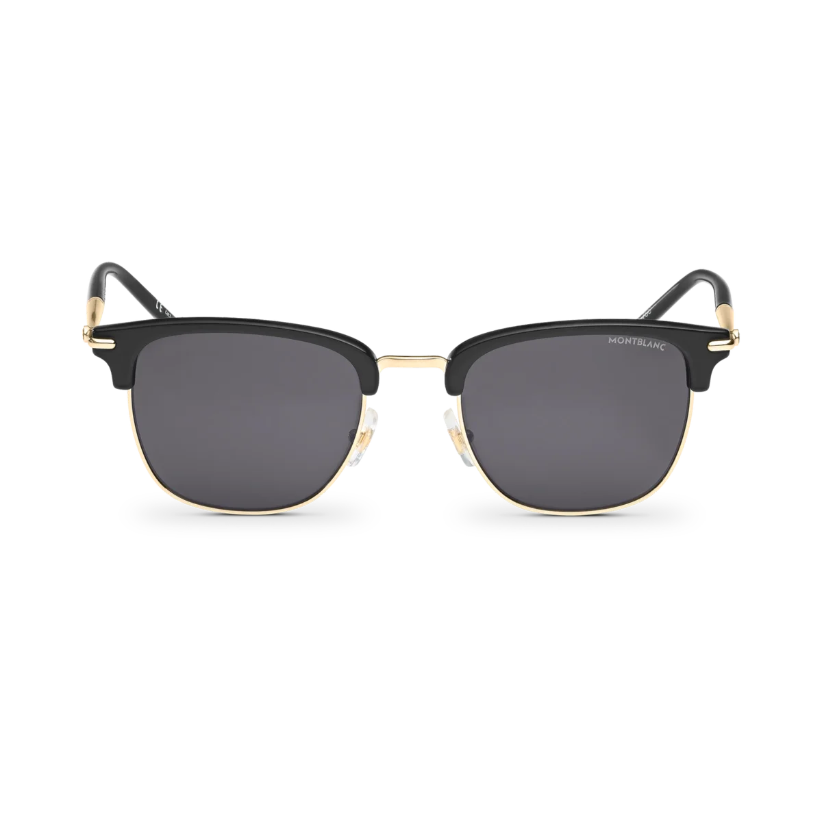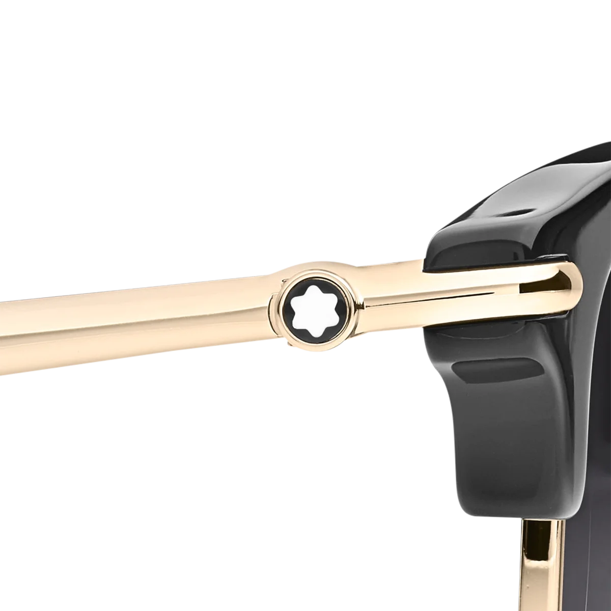 Ces lunettes de soleil de style rectangulaire ont une monture injectée de couleur noire et des verres gris. L’emblème Montblanc Snowcap est encapsulé dans la branche et le logo Montblanc est gravé au laser sur le verre gauche. Le détail à trois anneaux sur la branche rappelle la collection Montblanc Meisterstück.