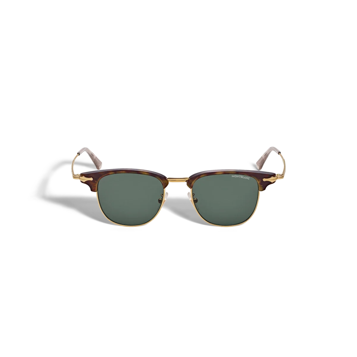 Ces lunettes de soleil de style rectangulaire ont une monture métallique dorée et des verres verts. Inspiré du design des plumes des instruments d’écriture, un détail décoratif en forme de plume orne les branches en métal. Le logo Montblanc est gravé au laser sur le verre gauche et un motif antidérapant est gravé au laser à l’intérieur des extrémités des branches pour plus de confort.