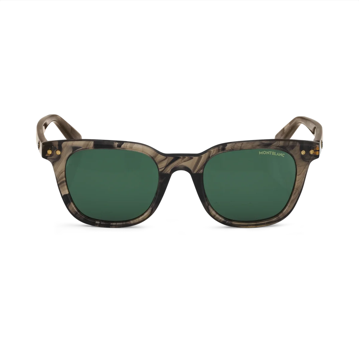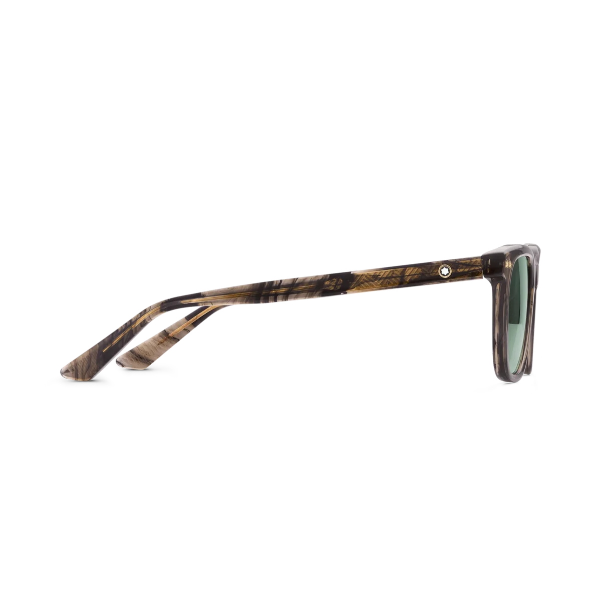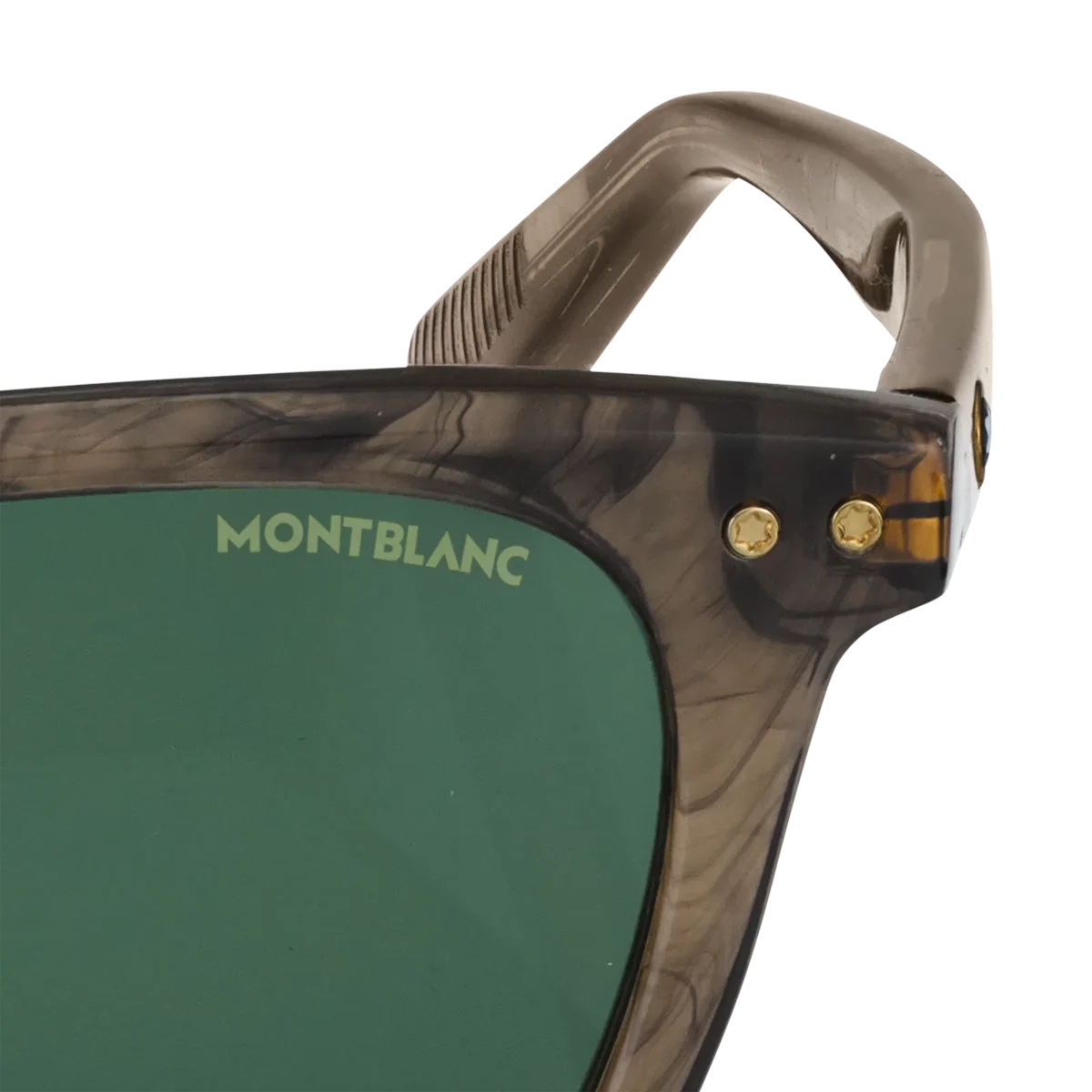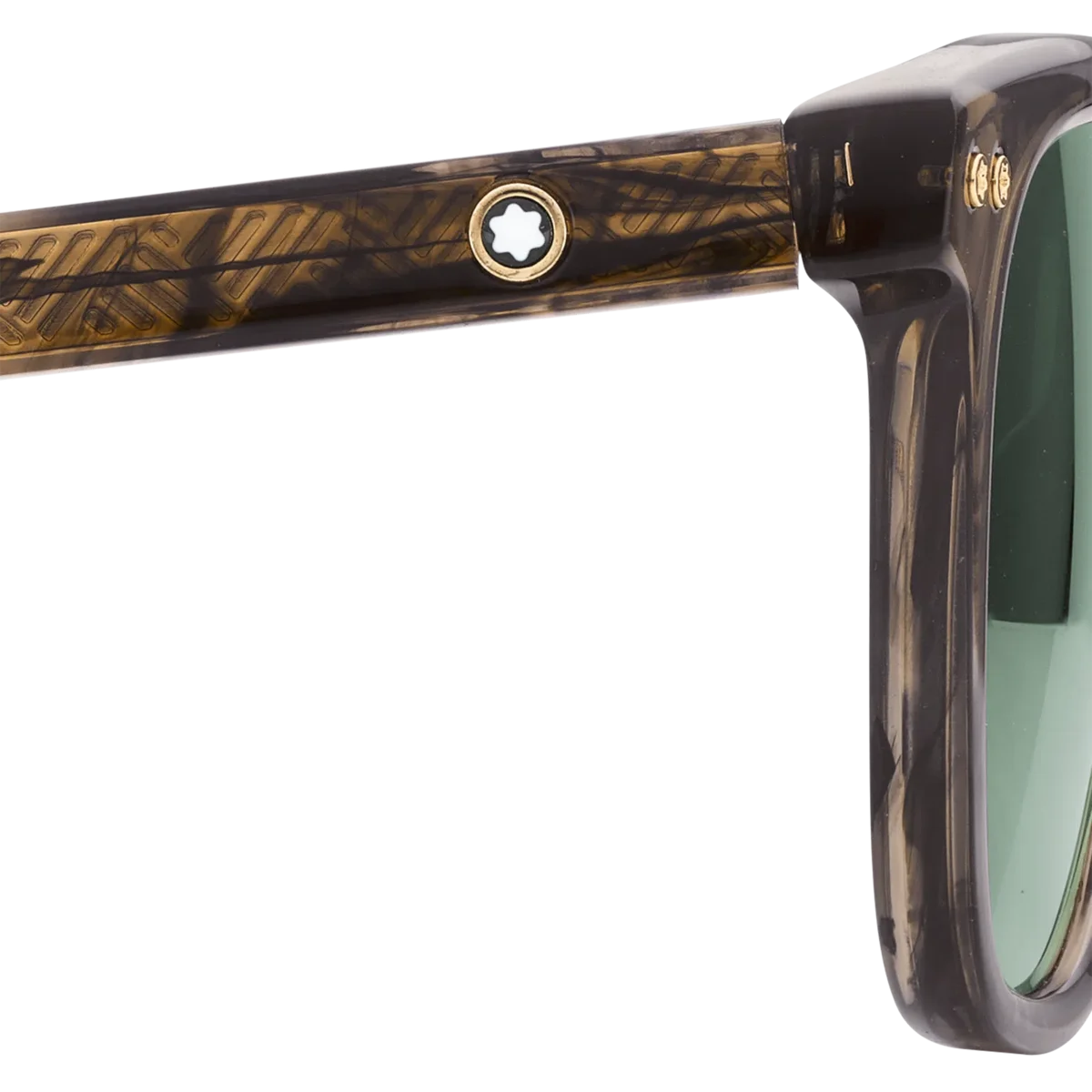 Ces lunettes de soleil rondes sont dotées d’une monture en acétate marron et de verres verts. Les rivets à l’avant sont rehaussés d’un détail en forme de calotte neigeuse et le motif Montblanc 3.0 est intégré à l’intérieur des branches. Le logo Montblanc est gravé au laser sur le verre gauche et le motif antidérapant est gravé au laser à l’intérieur des extrémités des branches pour plus de confort.