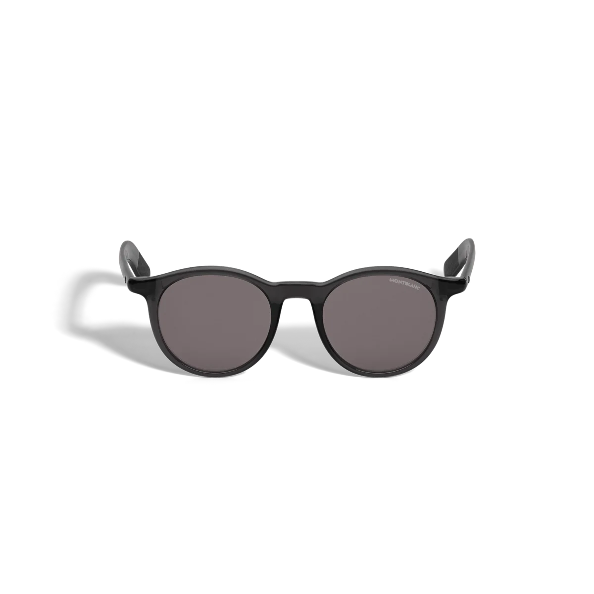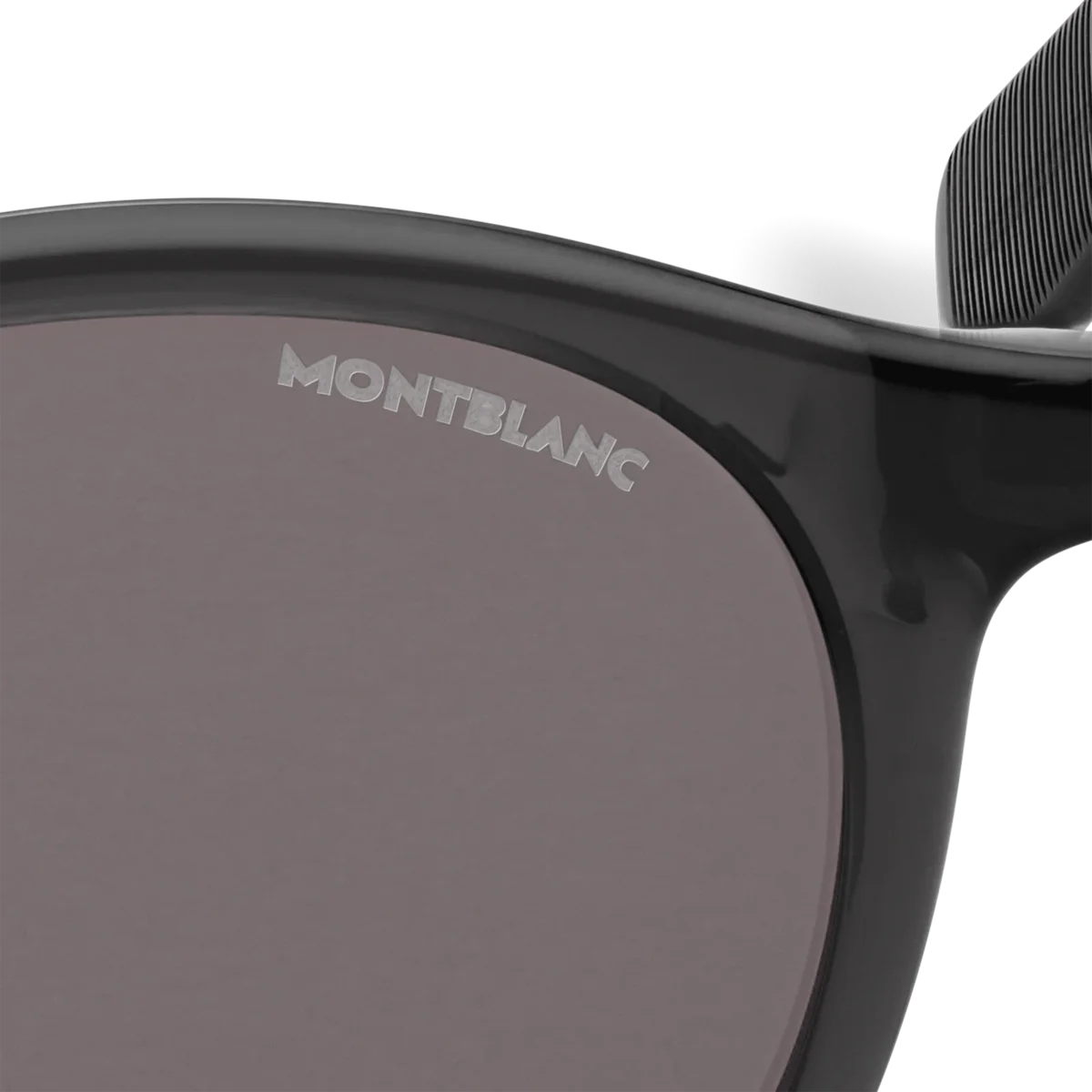 Ces lunettes de soleil de style rond ont une monture en acétate injecté de couleur noire et des verres gris. L’emblème Montblanc est intégré dans le design des branches. Le logo Montblanc est gravé au laser sur le verre gauche des lunettes de soleil et le motif antidérapant est gravé au laser à l’intérieur des extrémités des branches pour plus de confort.