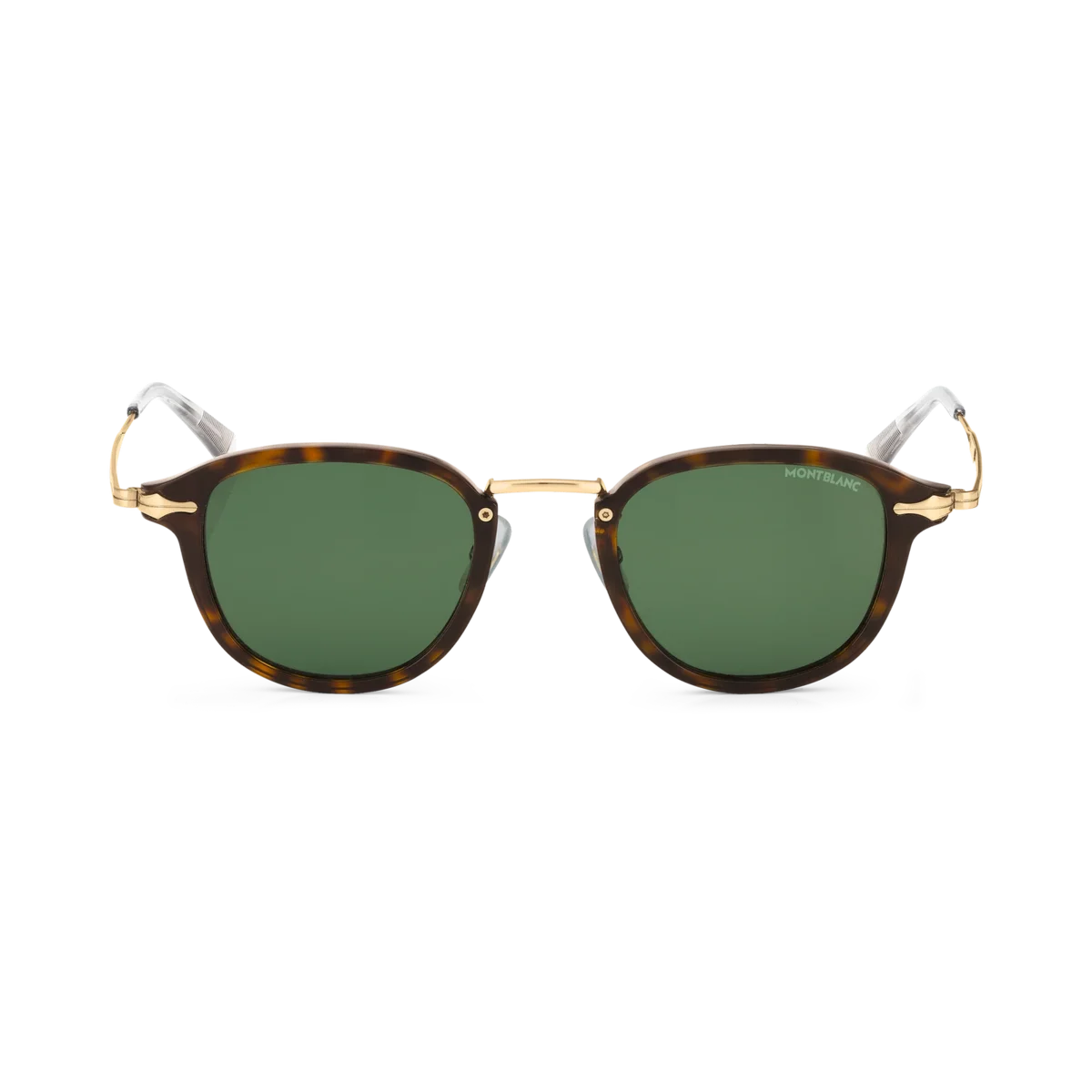 Découvrez tous les détails des lunettes de soleil rondes avec monture injectée couleur havane. Achetez en ligne sur la boutique officielle Montblanc.