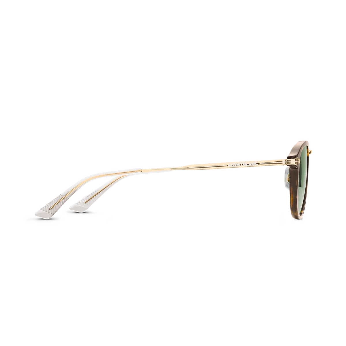 Ces lunettes de soleil rondes sont dotées d’une monture injectée couleur Havane et de verres verts. Inspiré du design des stylos, un détail décoratif en forme de plume orne les branches métalliques. Le logo Montblanc est gravé au laser sur le verre gauche et un motif antidérapant est gravé au laser à l’intérieur des embouts des branches pour plus de confort.