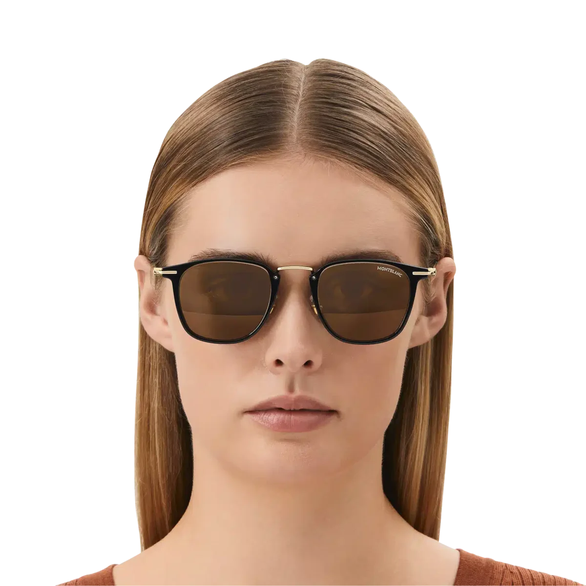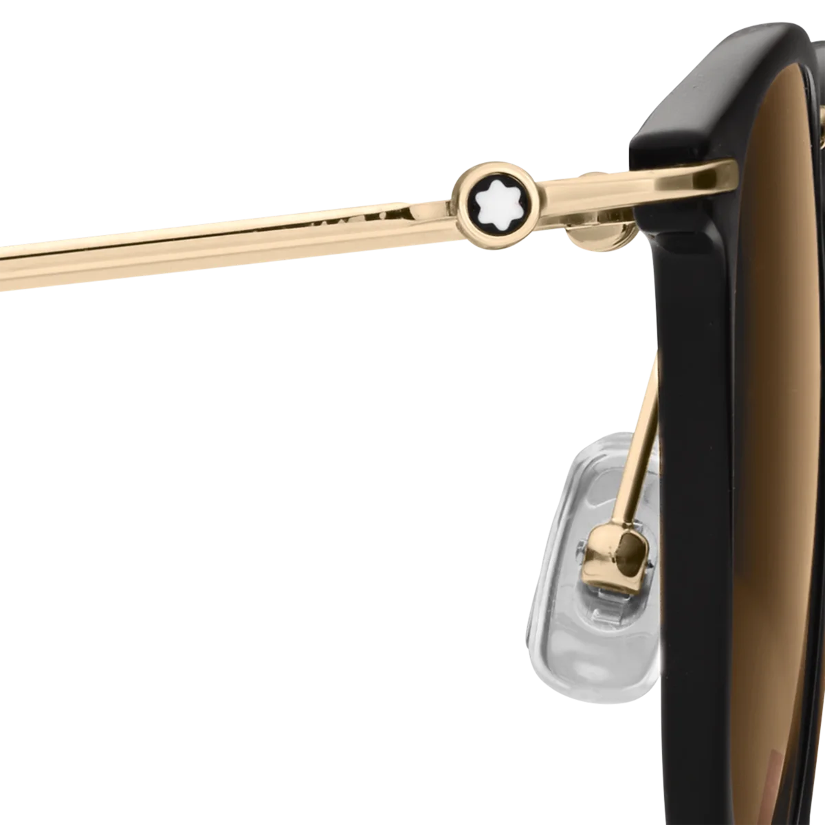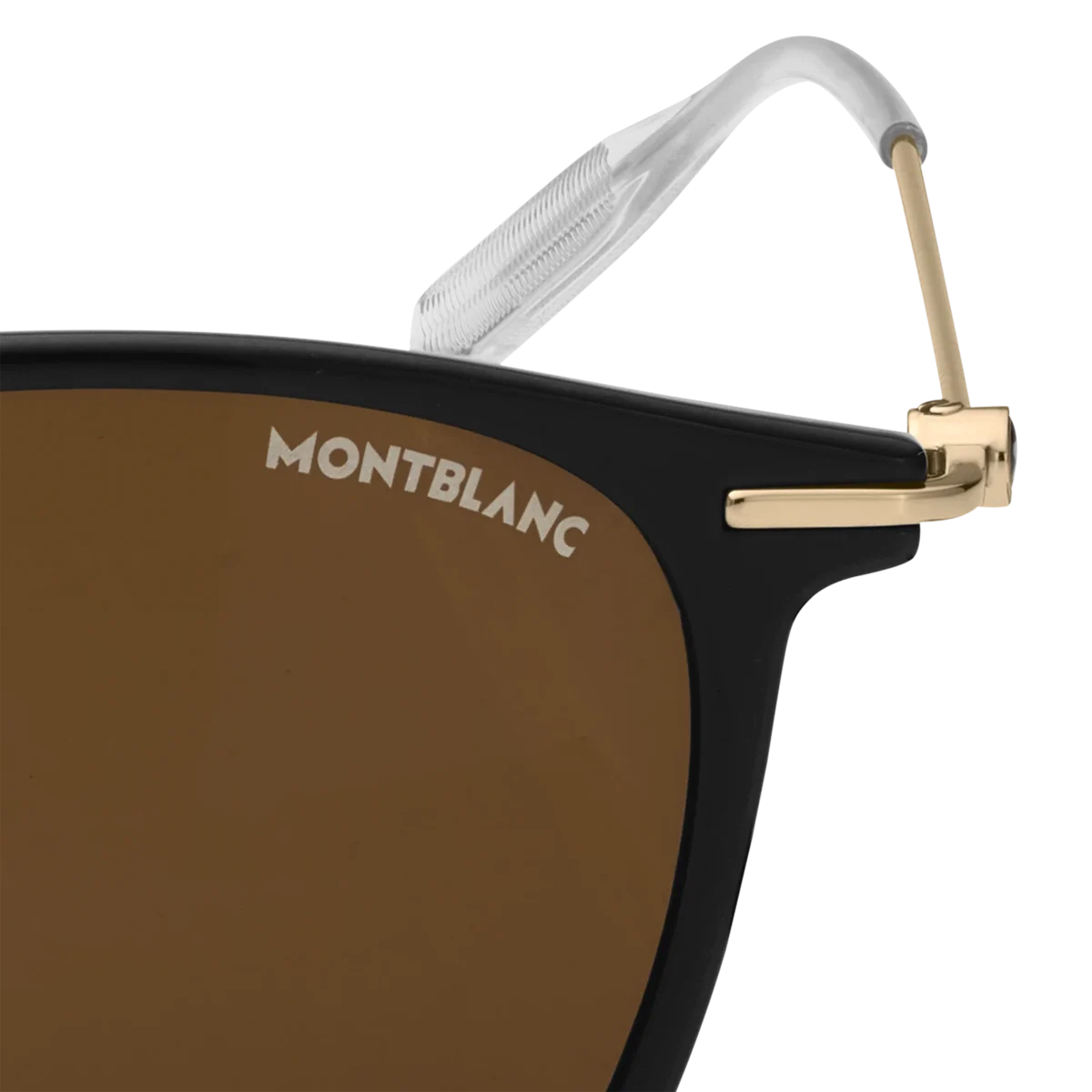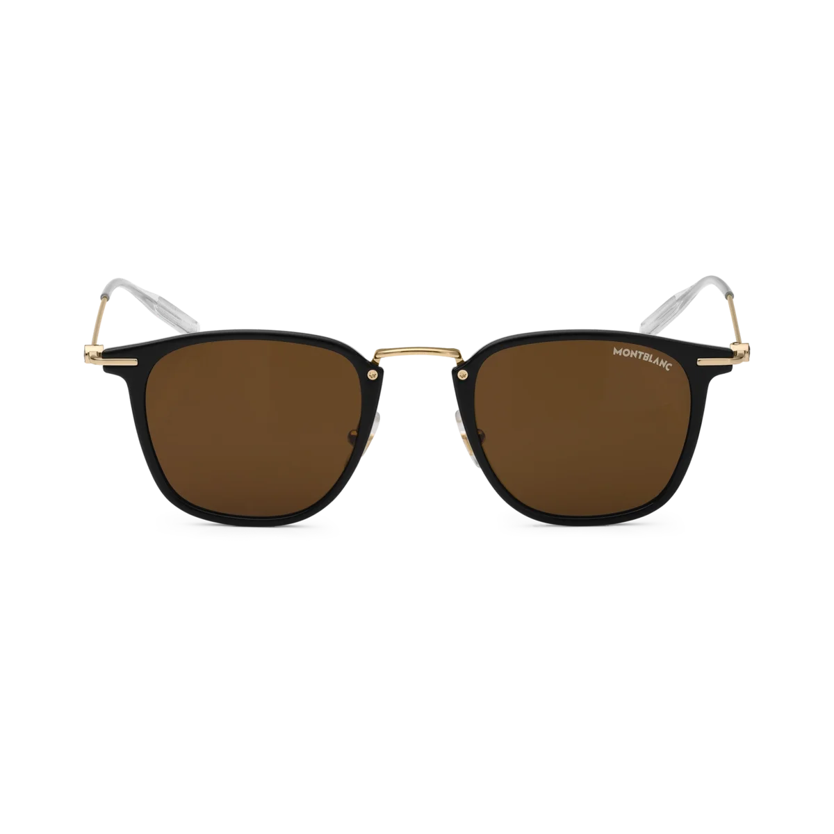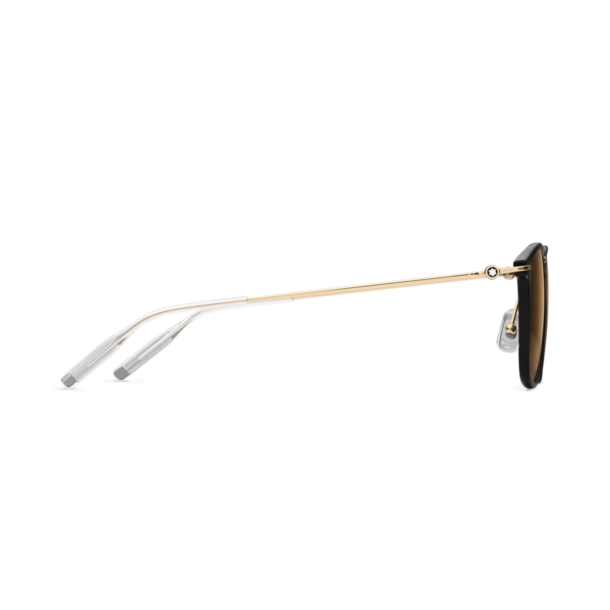 Ces lunettes de soleil noires légères, dotées d’une monture moulée par injection de couleur dorée, se caractérisent par leur forme ronde. Les verres bruns leur confèrent un look contemporain. Le logo Montblanc est gravé au laser sur le verre gauche et le motif antidérapant est gravé au laser sur la face interne des extrémités des branches pour plus de confort.