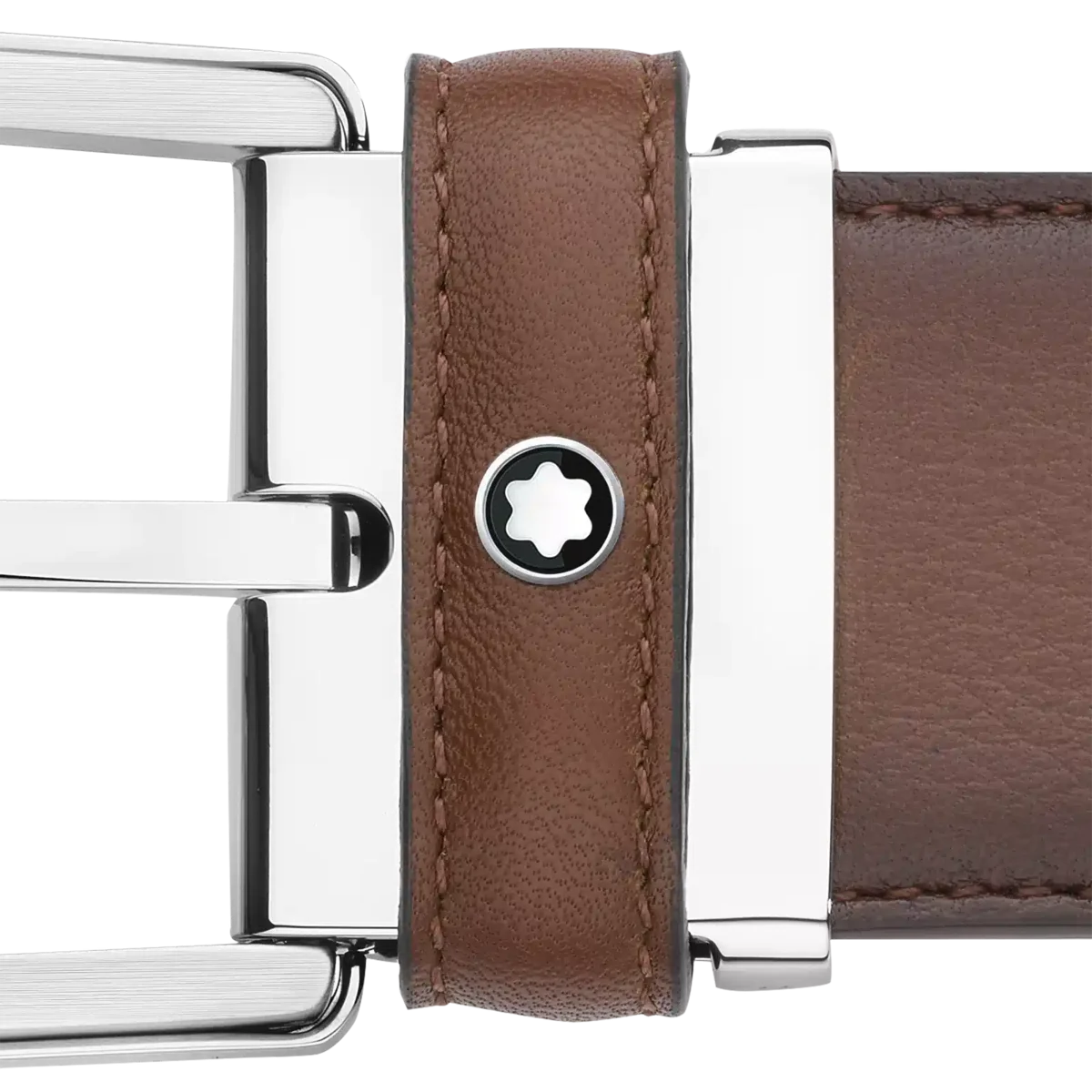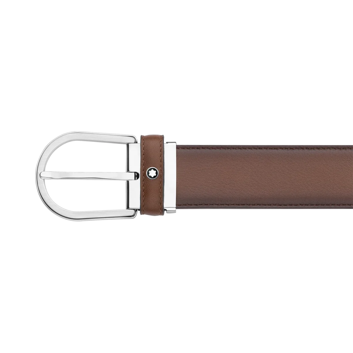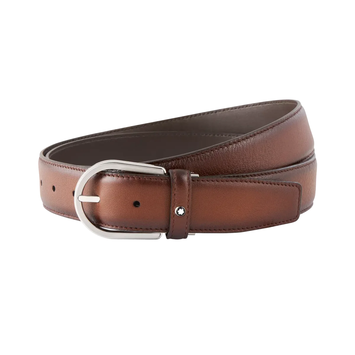 Boucle ardillon en acier inoxydable brillant et mat. Sangle en cuir lisse marron auto-ajustable, 3,5 cm x 120 cm, présentant la patine unique du cuir peint à la main avec un dégradé de couleurs délicat. Identifiant : MB118413 Dimensions : 1200 mm * 35 mm * 5 mm 5 mm