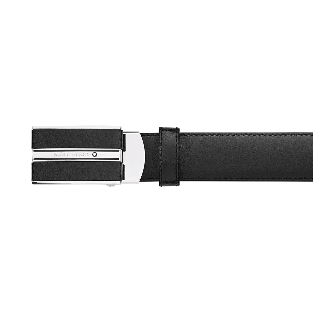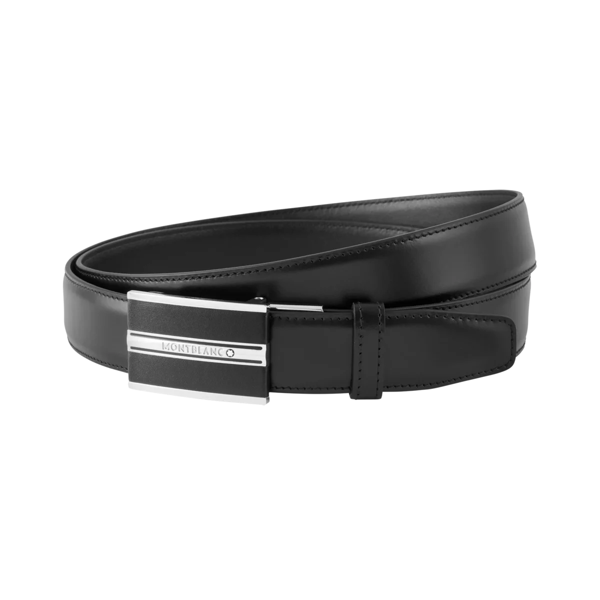 Boucle rectangulaire en acier inoxydable brillant avec insert en cuir et mécanisme coulissant. Sangle en cuir lisse noir auto-ajustable, 3 cm x 120 cm, assortie à la gamme Meisterstück Leather Goods. Le tout nouveau mécanisme coulissant permet d’ajuster la ceinture sans broche et donc sans trous sur la sangle. Il est facile à ouvrir et à fixer à la bonne taille grâce à l’insert en caoutchouc situé à l’arrière de la sangle.MB118421