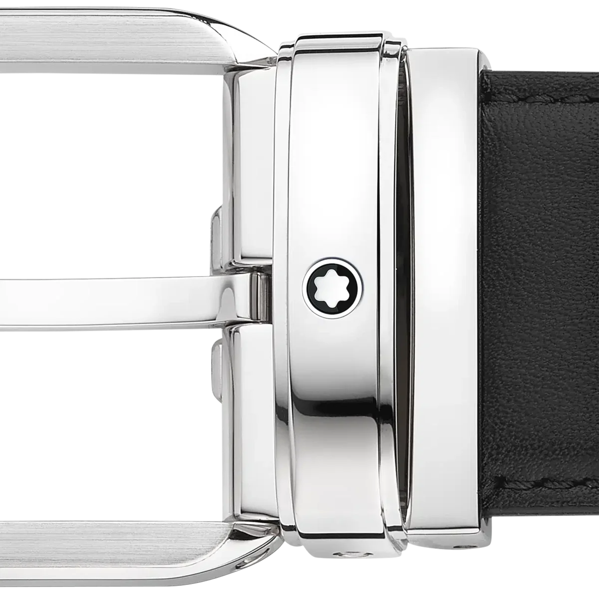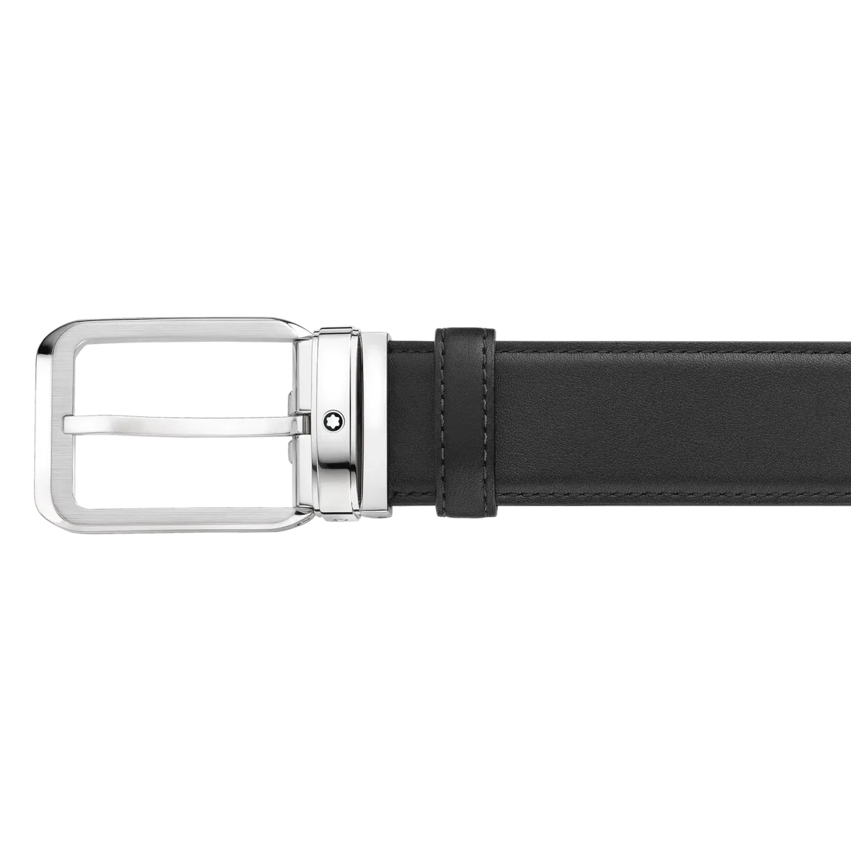 Boucle rectangulaire en acier inoxydable. Auto-ajustable, 3,5 cm x 120 cm, sangle en cuir noir uni. Cette ceinture convient aussi bien aux tenues professionnelles qu’aux looks modernes.