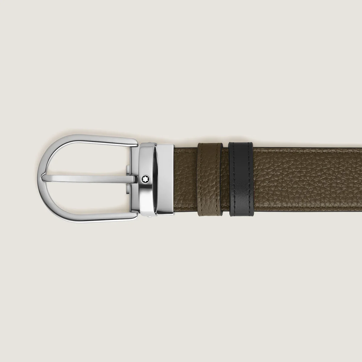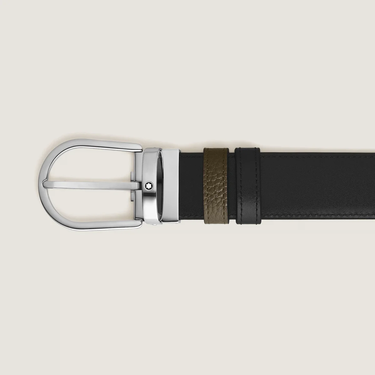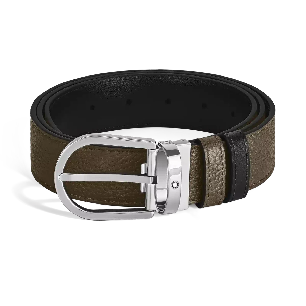 Cette ceinture réversible allie élégance discrète et fonctionnalité, offrant deux styles distincts en un seul accessoire. Dotée de notre boucle en fer à cheval Montblanc distinctive au fini palladium, l’une des faces de la sangle de 35 mm est en cuir grainé de couleur kaki, tandis que l’autre est en cuir Meisterstück noir élégant pour une sophistication classique.