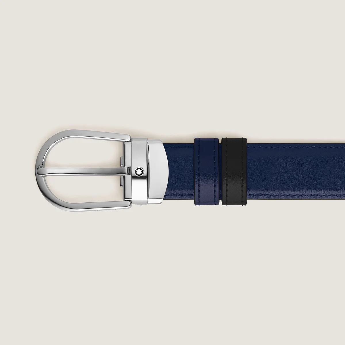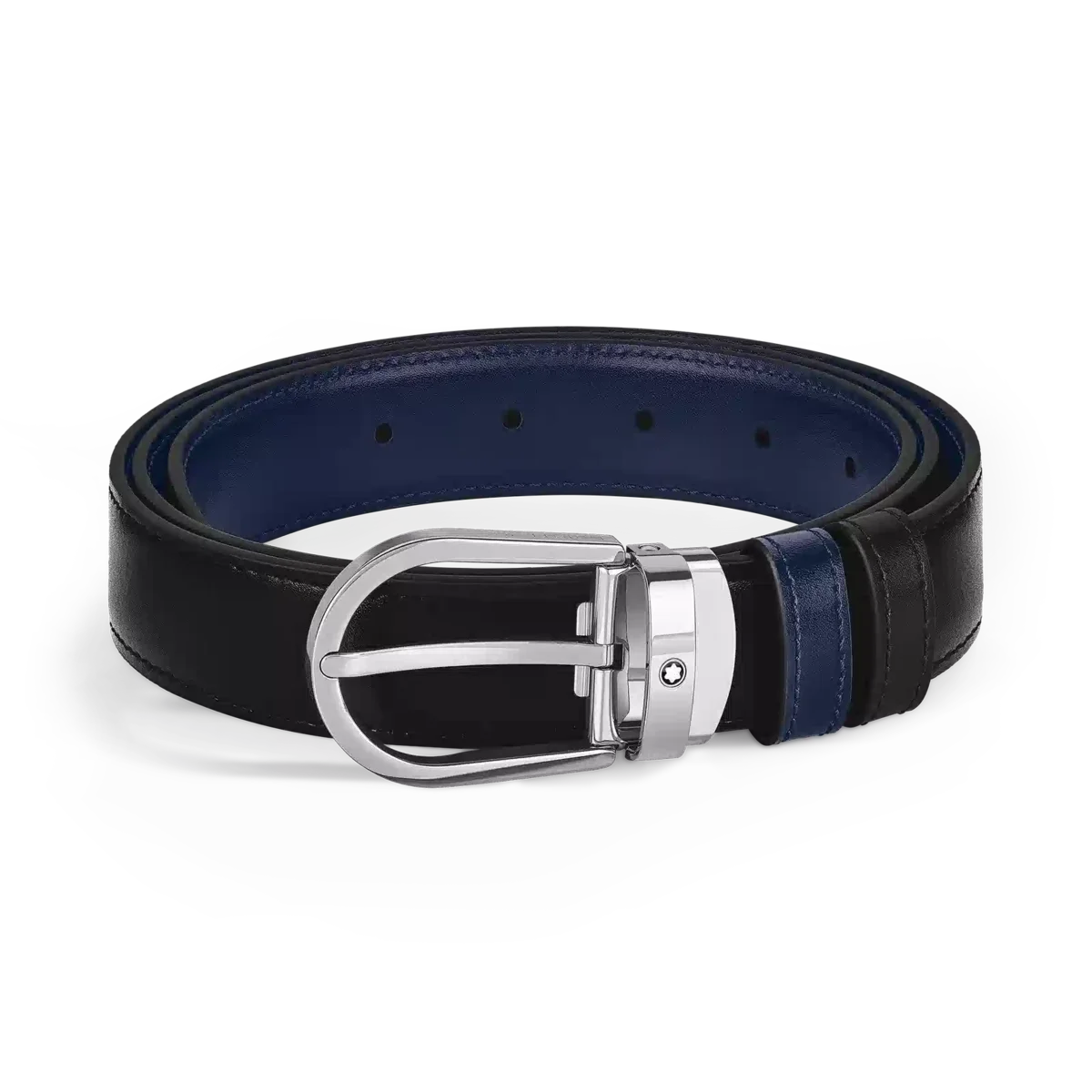 Cette ceinture réversible allie élégance discrète et fonctionnalité, offrant deux styles distincts en un seul accessoire. Dotée de notre boucle en fer à cheval Montblanc distinctive avec finition palladium, l’un des côtés de la sangle de 35 mm est en cuir imprimé saffiano noir, tandis que l’autre côté est en cuir Meisterstück bleu encre pour une sophistication classique.
