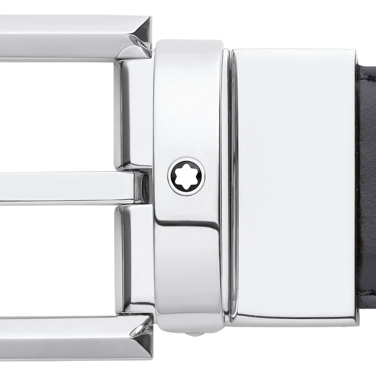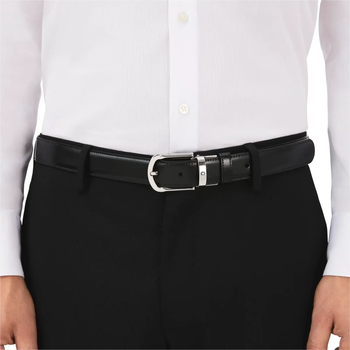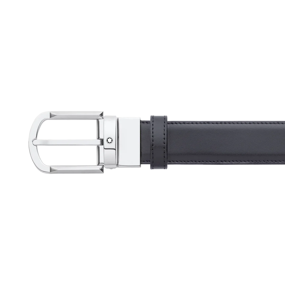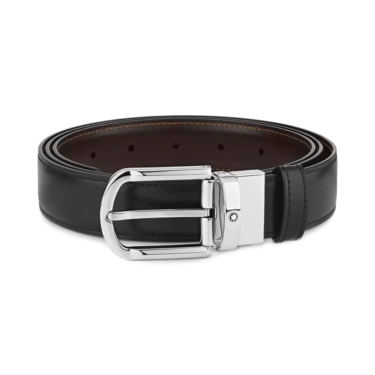 Découvrez tous les détails de la ceinture réversible en cuir noir/marron avec boucle en fer à cheval de 30 mm. Achetez en ligne sur la boutique officielle Montblanc.