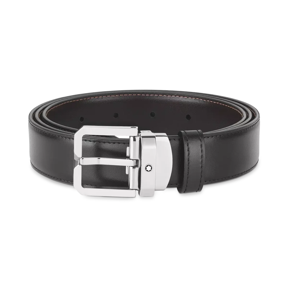 Ajoutez une touche sophistiquée à n’importe quelle tenue avec cette ceinture réversible en cuir fin noir et marron de 3 cm x 120 cm.Le design est complété par une boucle rectangulaire en acier avec une finition palladium brillante. Numéro d’identification : MB132873 Dimensions : 1200 mm * 30 mm * 5 mm 5 mm