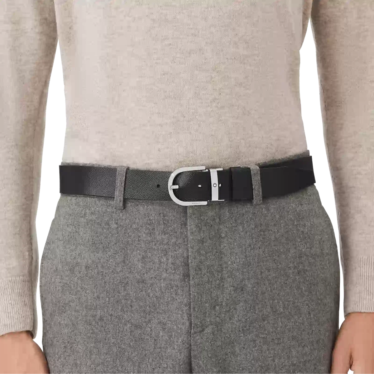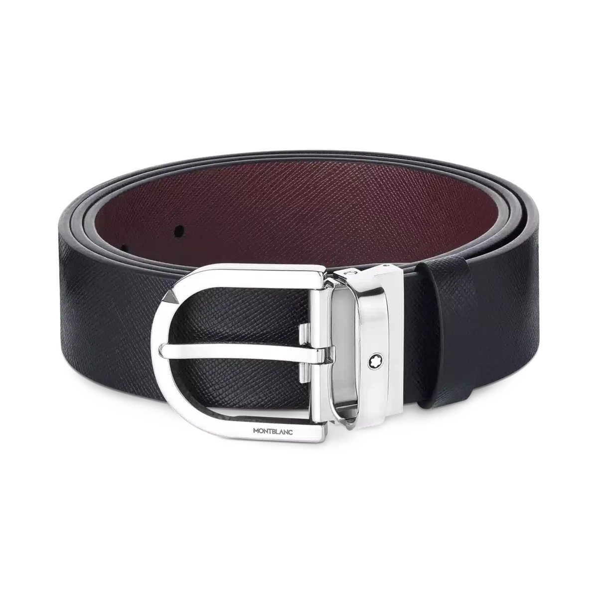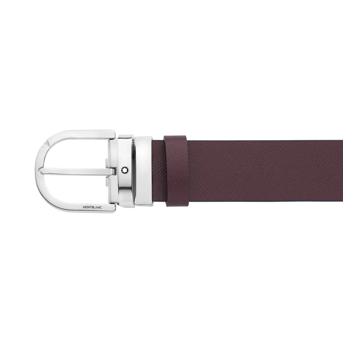 Polyvalente et audacieuse, cette ceinture réversible en cuir imprimé Saffiano de 35 mm est le choix idéal pour ceux qui n’ont pas peur de laisser leur empreinte. Sa boucle ardillon en fer à cheval est dotée d’un mécanisme facile à ouvrir et s’adapte parfaitement aux côtés noir et bordeaux de la ceinture.