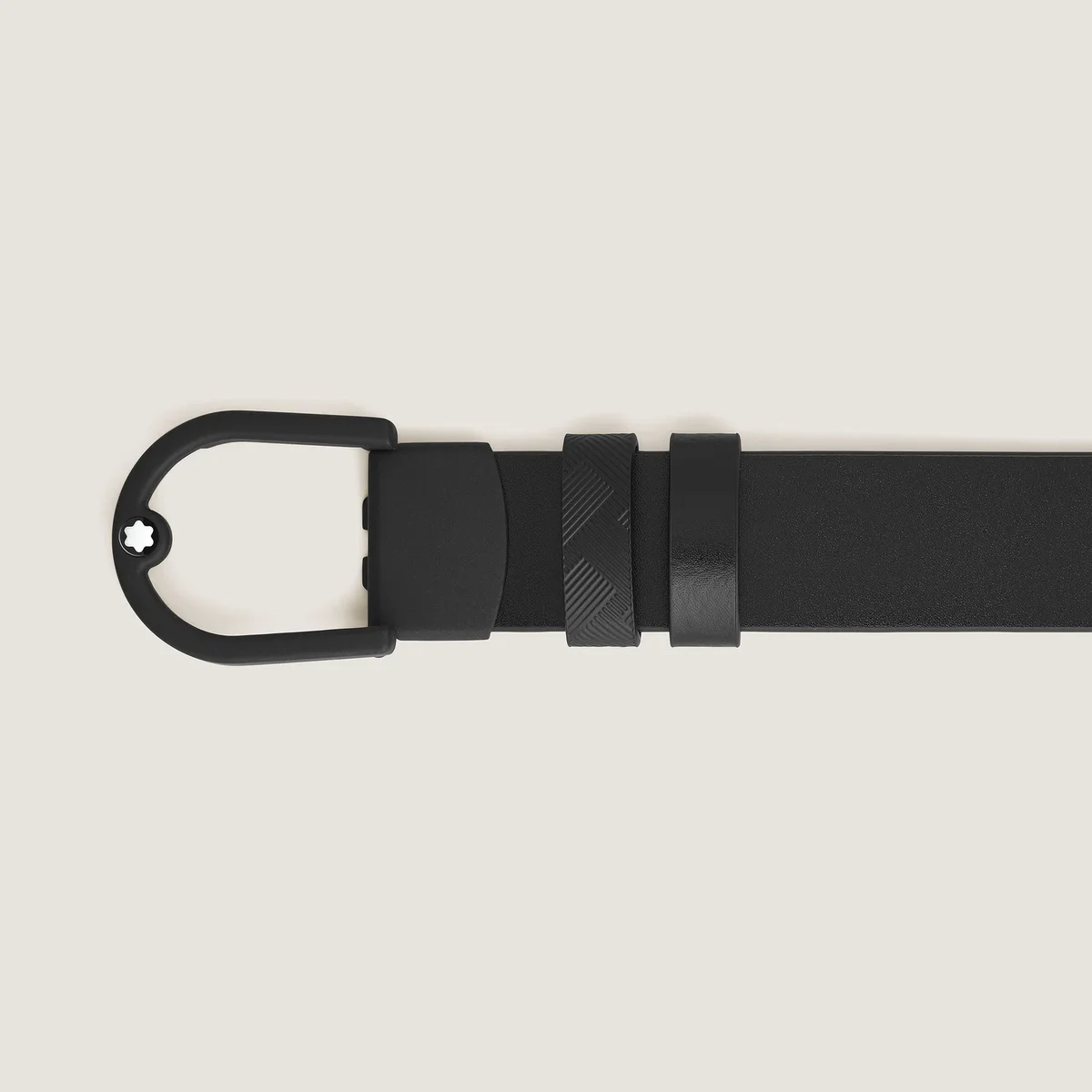 Cette ceinture réversible de 30 mm combine la silhouette élégante d’une boucle en caoutchouc avec finition PVD et la polyvalence de deux lanières en cuir distinctes. Avec ses lignes épurées et incurvées, la boucle en fer à cheval ajoute une touche de sophistication moderne à votre style. La sangle de la ceinture offre polyvalence et style raffiné, avec deux looks distincts en un seul accessoire : tandis qu’un côté présente un cuir imprimé Extreme 3.0 noir avec un design audacieux et texturé, l’autre côté est en cuir Meisterstück noir élégant pour une finition intemporelle et raffinée.