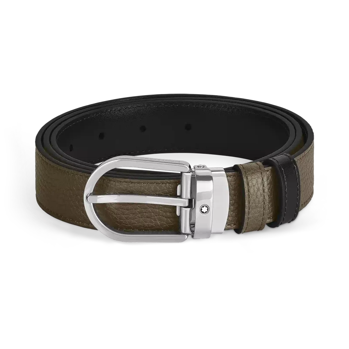 Cette ceinture réversible allie élégance discrète et fonctionnalité, offrant deux styles distincts en un seul accessoire. Dotée de notre boucle Montblanc en forme de fer à cheval au fini palladium, l’un des côtés de la sangle de 30 mm est en cuir grainé de couleur kaki, tandis que l’autre côté est en cuir Meisterstück noir élégant pour une sophistication classique.