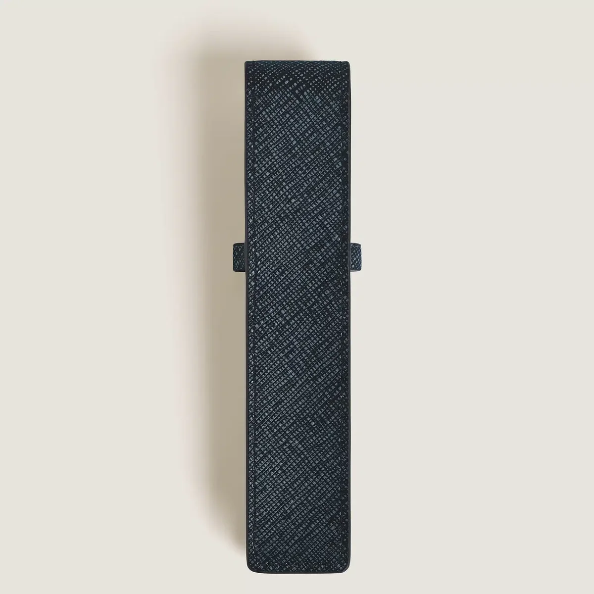 Compagnon élégant de votre instrument d’écriture le plus précieux, cet étui à stylo raffiné est fabriqué à partir de cuir gaufré dans une combinaison sophistiquée de deux tons, bleu et noir. Sa silhouette superposée s’inspire de la forme d’une enveloppe, l’ancrant plus profondément dans la culture de l’écriture.