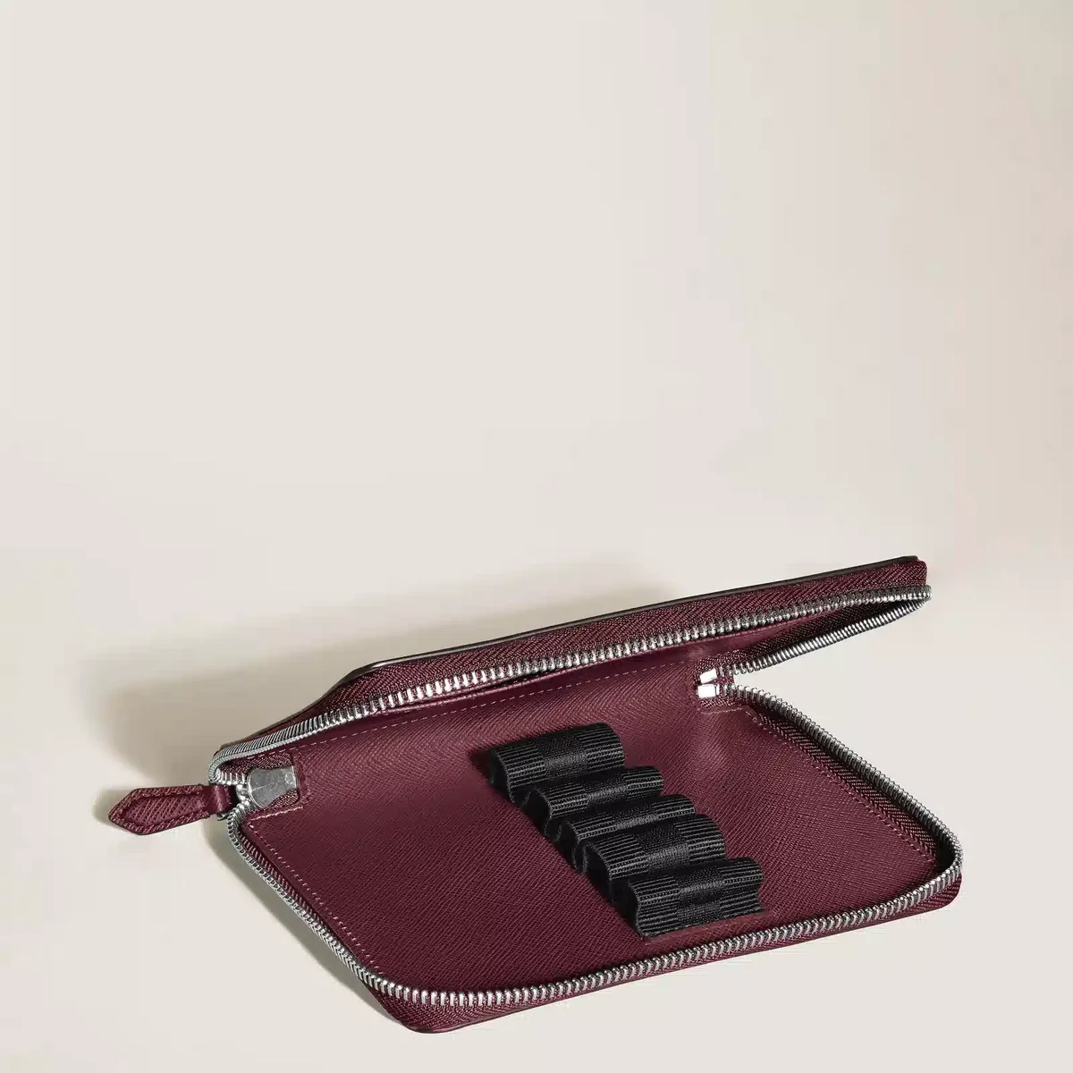 Protégez vos instruments d’écriture préférés avec style grâce à cette grande pochette à stylos Sartorial. Confectionnée en cuir raffiné imprimé Saffiano couleur cassis, cette pochette zippée comporte cinq compartiments dédiés aux stylos de la taille du Meisterstück Classique ou du Le Grand. Pour une touche finale raffinée, elle est ornée de l’emblème Montblanc.
