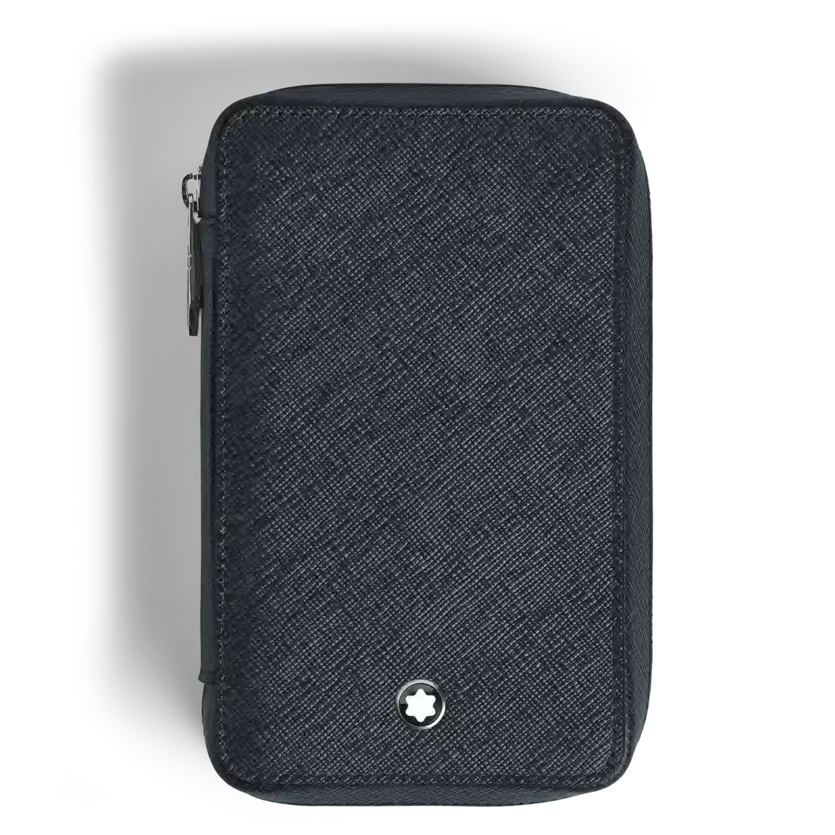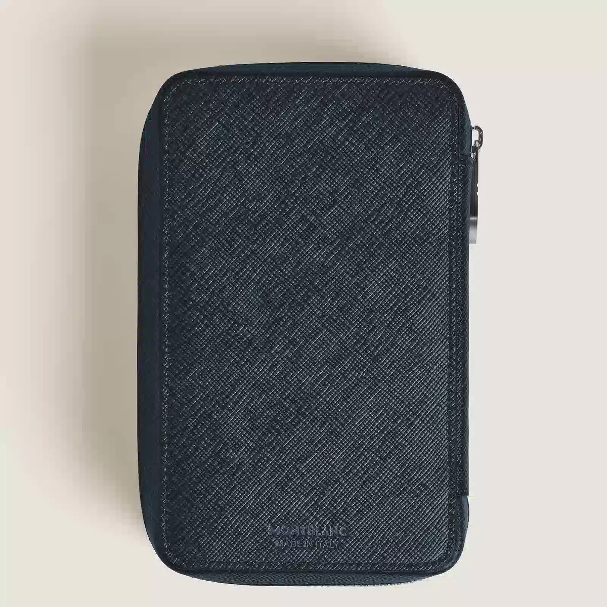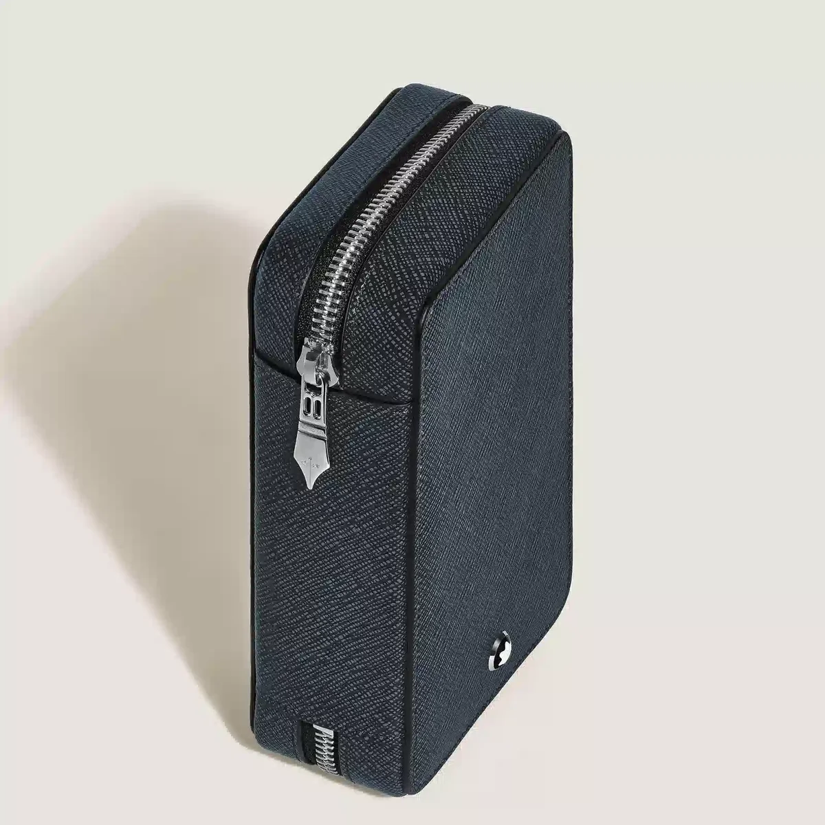 Confectionnée en cuir Sartorial gaufré bicolore bleu et noir, cette pochette à stylos est conçue pour contenir jusqu’à huit stylos Meisterstück Classique ou LeGrand, les gardant ainsi organisés et en sécurité. Dotée d’une tirette métallique distinctive en forme de plume, elle rend hommage au riche héritage de Montblanc en matière d’écriture. Idéale pour les professionnels et les amateurs d’écriture, elle allie un savoir-faire raffiné à une fonctionnalité pratique.