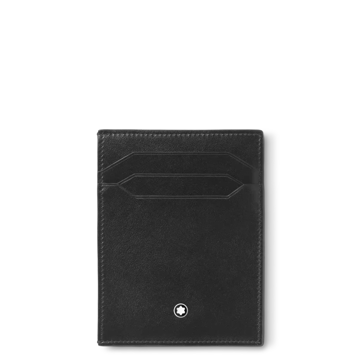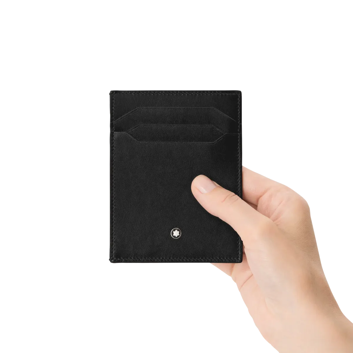 Ce porte-cartes Meisterstück est confectionné en cuir lisse et doublé de tissu noir. Alliant le design classique de Montblanc à une fonctionnalité optimale, il dispose de quatre emplacements pour cartes de crédit, de trois poches supplémentaires pour les billets pliés ou les reçus, ainsi que d’une poche amovible très pratique permettant de voir facilement les cartes d’identité personnelles. Il est orné de l’emblème Montblanc.