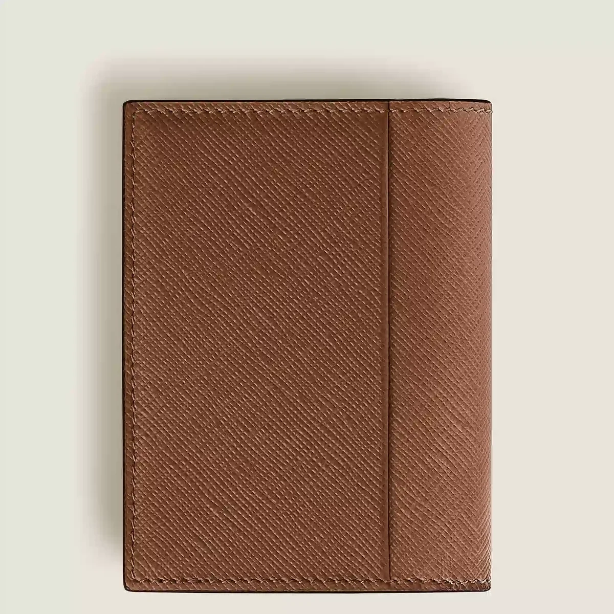 Compact mais polyvalent, ce porte-cartes est fabriqué à partir de cuir gaufré d’une élégante couleur fauve. Conçu avec des détails fonctionnels à l’intérieur comme à l’extérieur, il dispose de trois fentes pour cartes de crédit, d’un compartiment pour cartes de visite et d’une poche supplémentaire à l’intérieur, tandis que l’extérieur comprend une fente supplémentaire pour une quatrième carte de crédit.