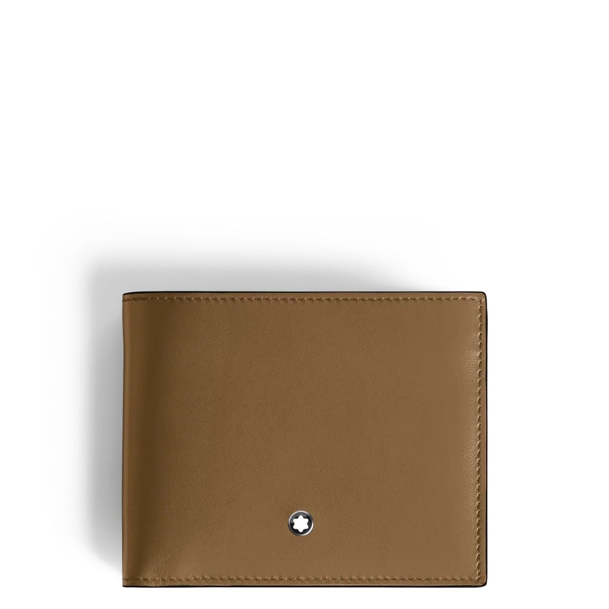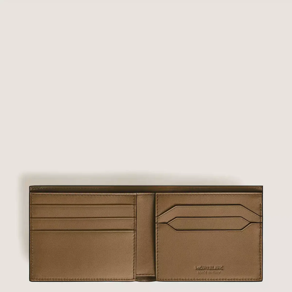 Fin et élégant, ce portefeuille classique à deux volets est un compagnon élégant au quotidien. Conçu pour contenir tous vos essentiels, il dispose de six emplacements pour cartes de crédit, de deux compartiments pour les billets de banque et de deux poches supplémentaires pour les reçus. Confectionné en cuir Meisterstück couleur sable luxueux, il est orné du subtil emblème Montblanc sur le devant.