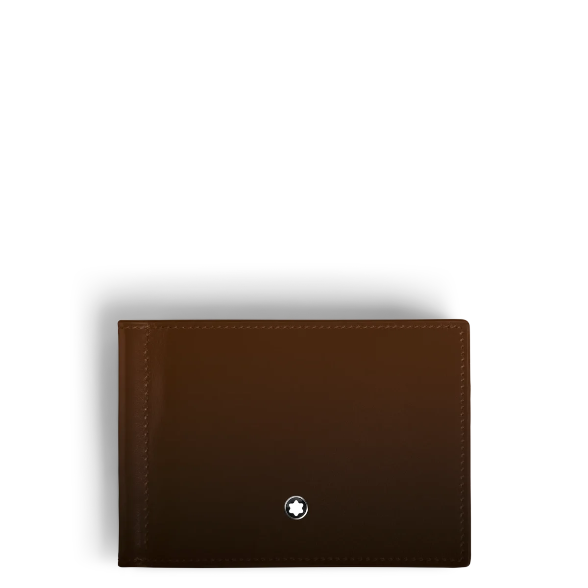 Ce portefeuille fin à deux volets revisite un design traditionnel avec une touche raffinée. Confectionné en cuir Meisterstück brun lisse rehaussé d’un effet sfumato appliqué à la main, il est doté d’un élégant clip à billets en métal et de six fentes pour cartes de crédit, offrant une organisation quotidienne élégante pour les personnes exigeantes.