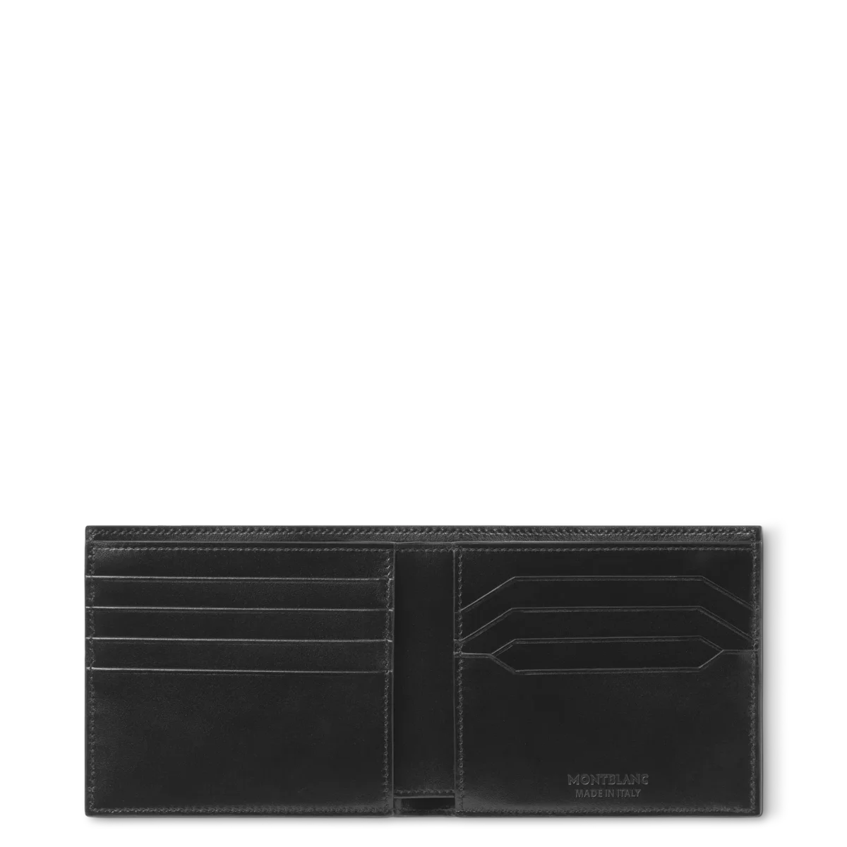 Élégant et compact, le portefeuille Meisterstück 8cc peut contenir huit cartes de crédit dans des emplacements dédiés, avec deux compartiments pour les billets de banque, plus deux poches supplémentaires pour les reçus ou les petits objets essentiels. Fabriqué à partir du cuir le plus fin, il est doublé de tissu noir et orné de l’emblème Montblanc.