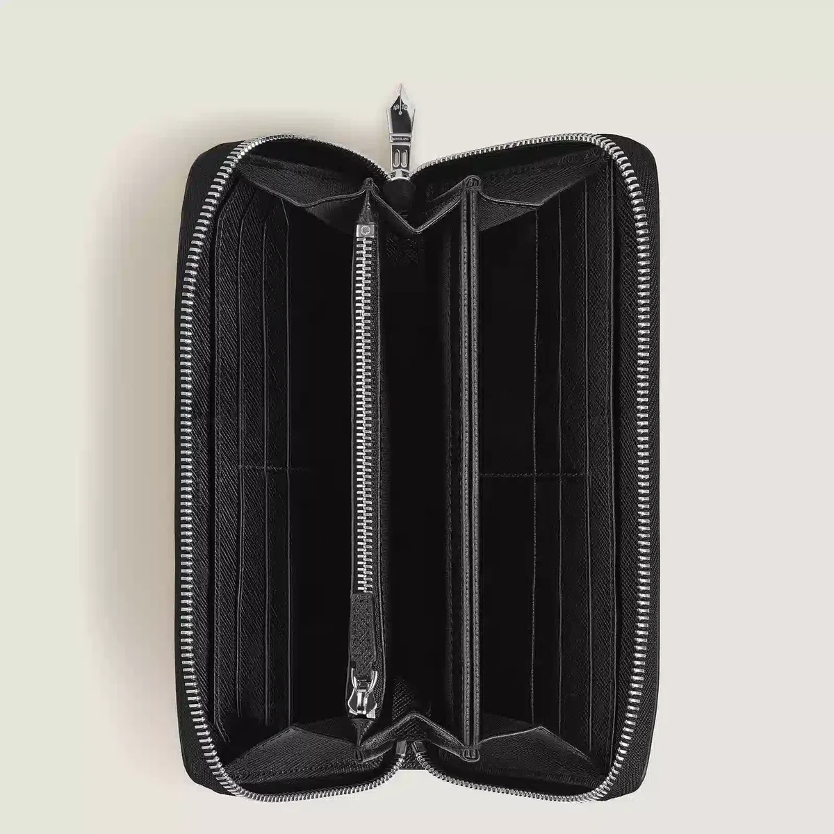 Confectionné en cuir Sartorial gaufré noir classique, ce portefeuille allie fonctionnalité et design raffiné. Doté d’une tirette métallique distinctive en forme de plume, il rend hommage à l’héritage de Montblanc dans le domaine de l’écriture. À l’intérieur, le portefeuille offre des emplacements pour 12 cartes de crédit, trois compartiments pour les billets, un porte-monnaie zippé sécurisé et trois poches supplémentaires pour les petits objets.