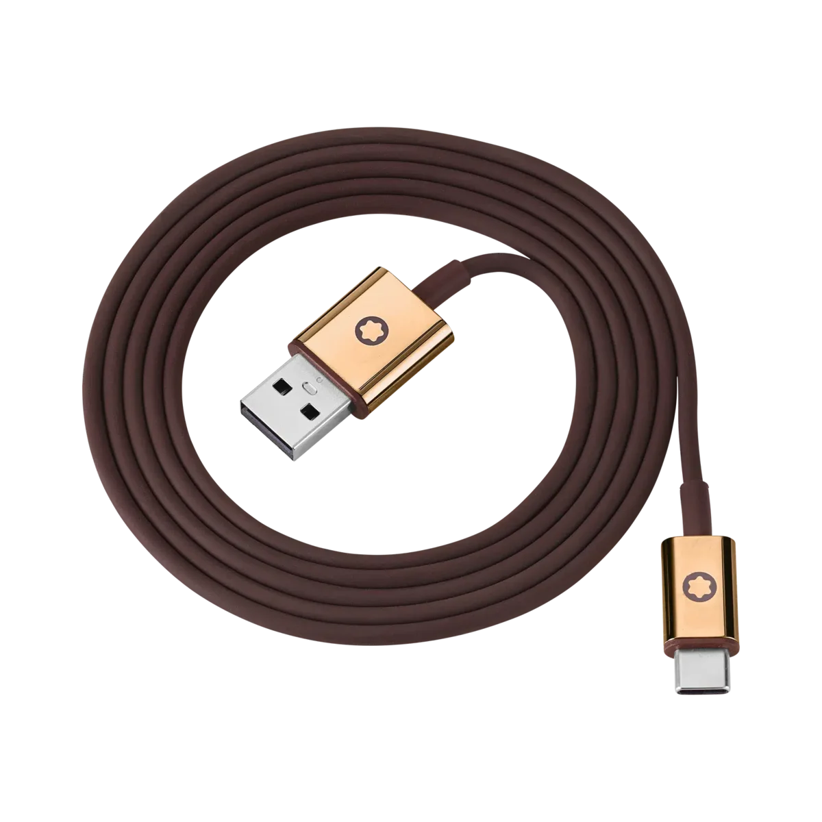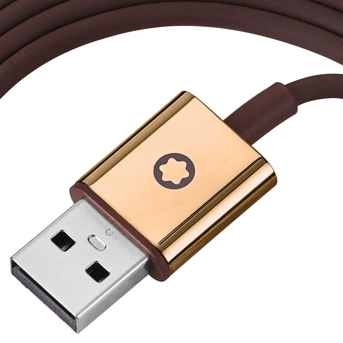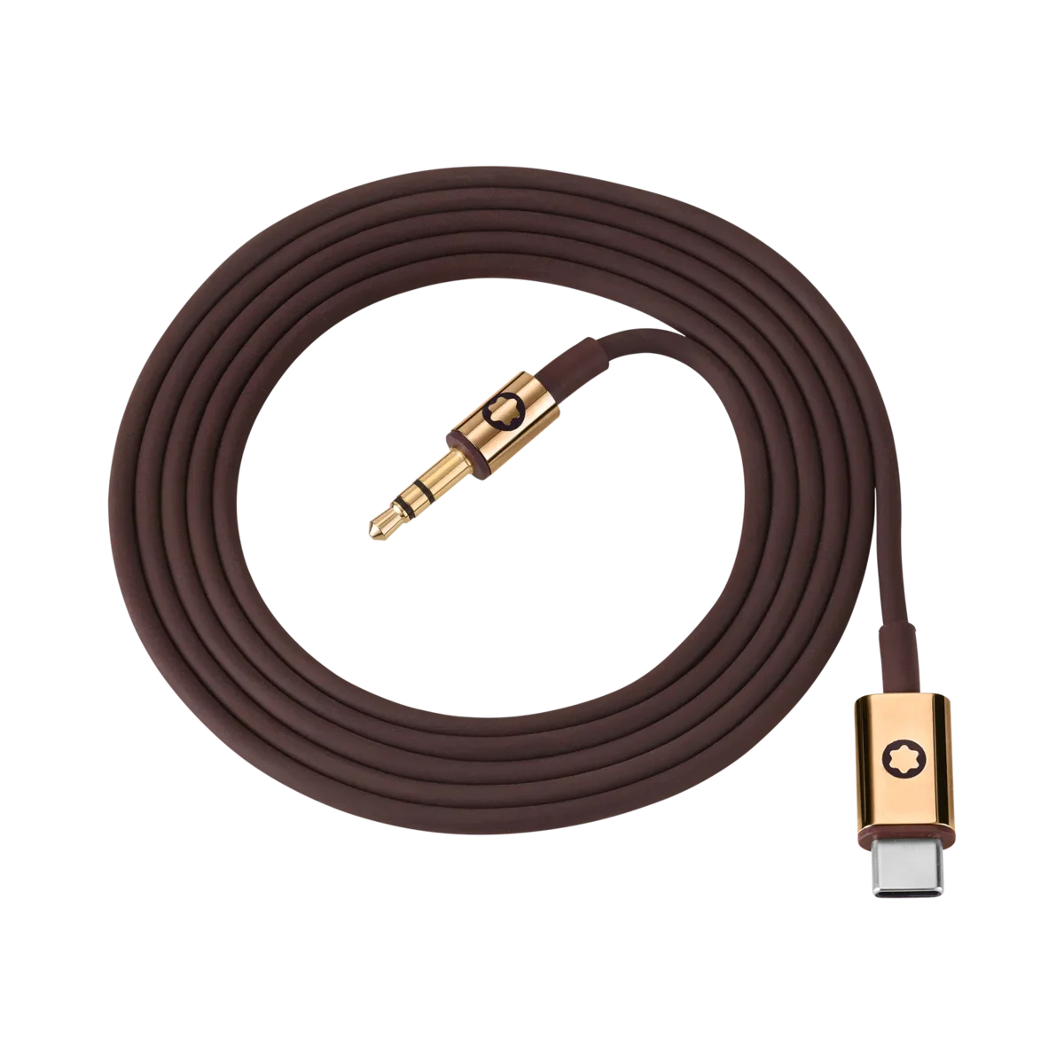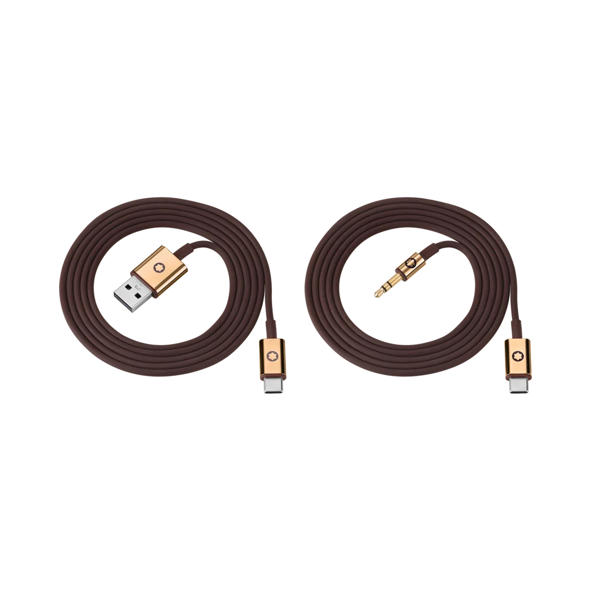Jeu de câbles supplémentaire pour votre casque Montblanc MB 01 comprenant un câble de recharge USB-C marron et un câble audio marron.
