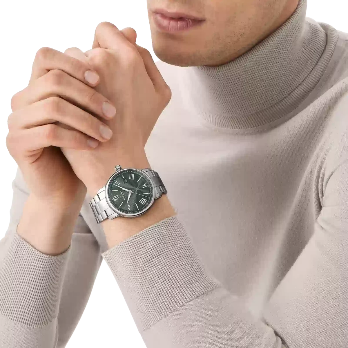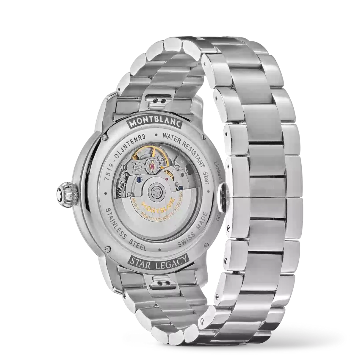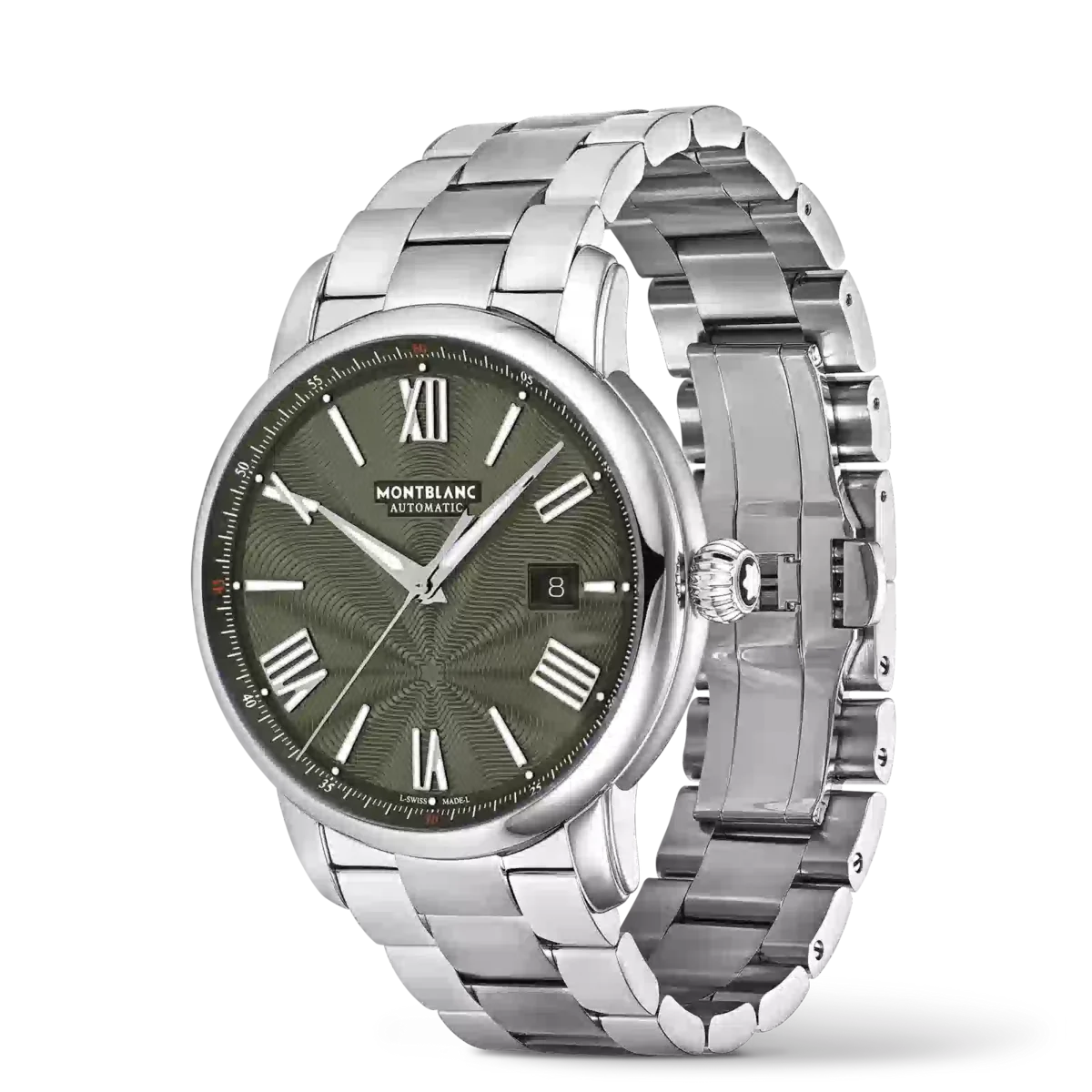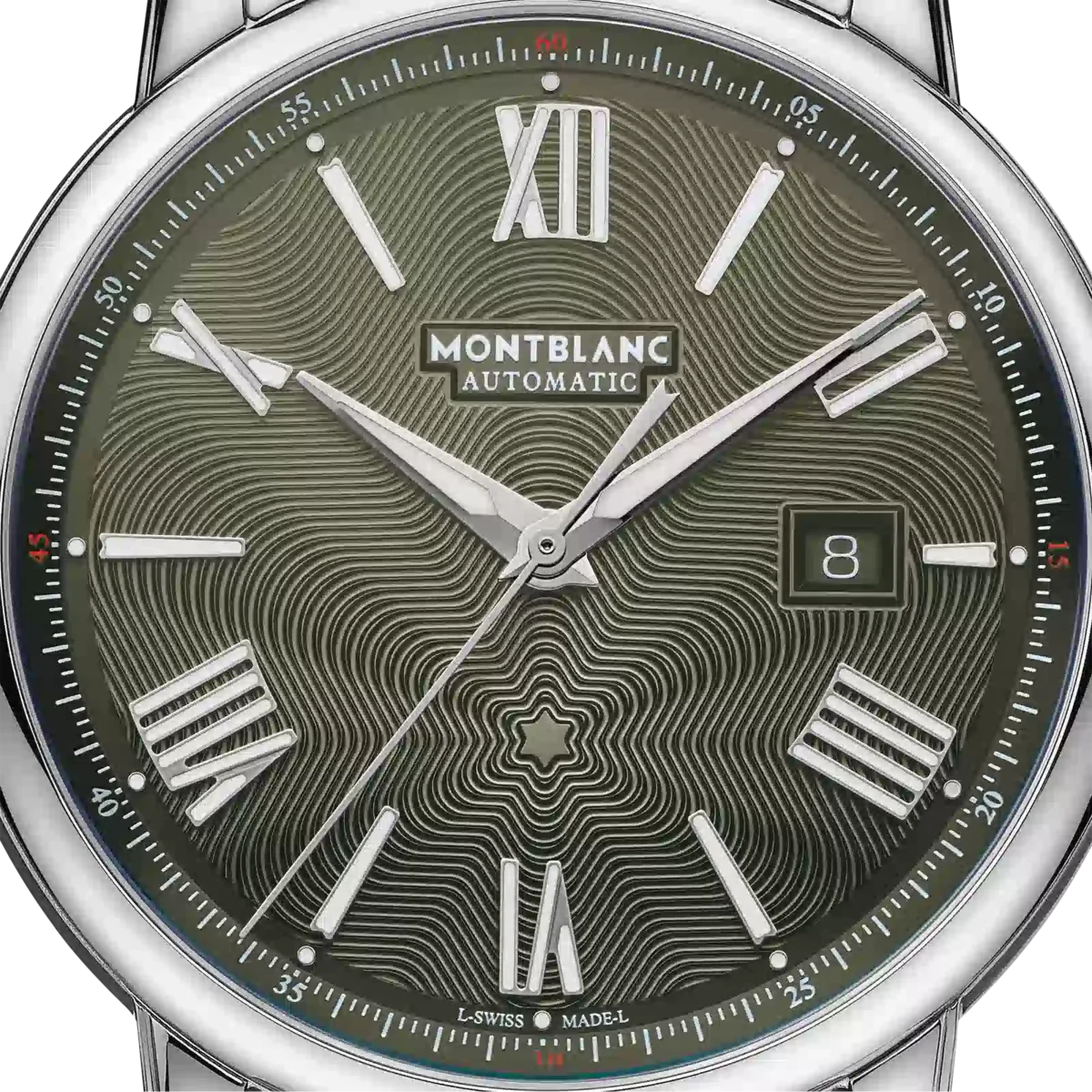 La Montblanc Star Legacy Automatic Date Limited Edition, limitée à 800 exemplaires, est ornée d’un cadran vert arborant le motif étoilé caractéristique de Montblanc, ainsi que d’aiguilles et de chiffres en forme d’épée recouverts de rhodium. Elle est animée par le mouvement automatique MB 24.17 qui indique les heures, les minutes, les secondes et la date. En termes de design, cette montre s’inspire des montres de poche Minerva de la fin du XIXe et du début du XXe siècle, avec leur boîtier rond, poli, en forme de galet et leur couronne en forme d’oignon. Cette montre est également équipée d’un bracelet interchangeable en acier inoxydable.