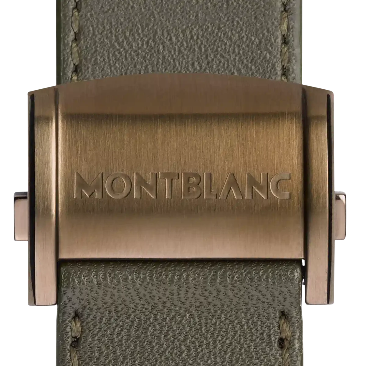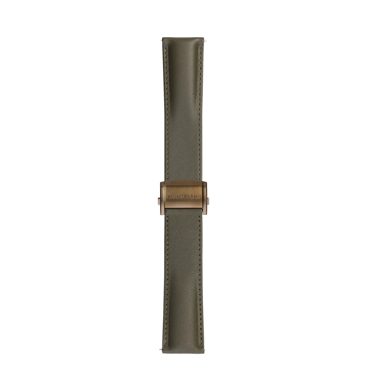 Bracelet en cuir de veau kaki de 22 mm avec boucle déployante réglable de couleur bronze en acier inoxydable. Compatible avec toutes les montres connectées Montblanc Summit.