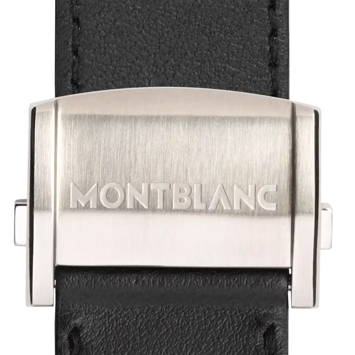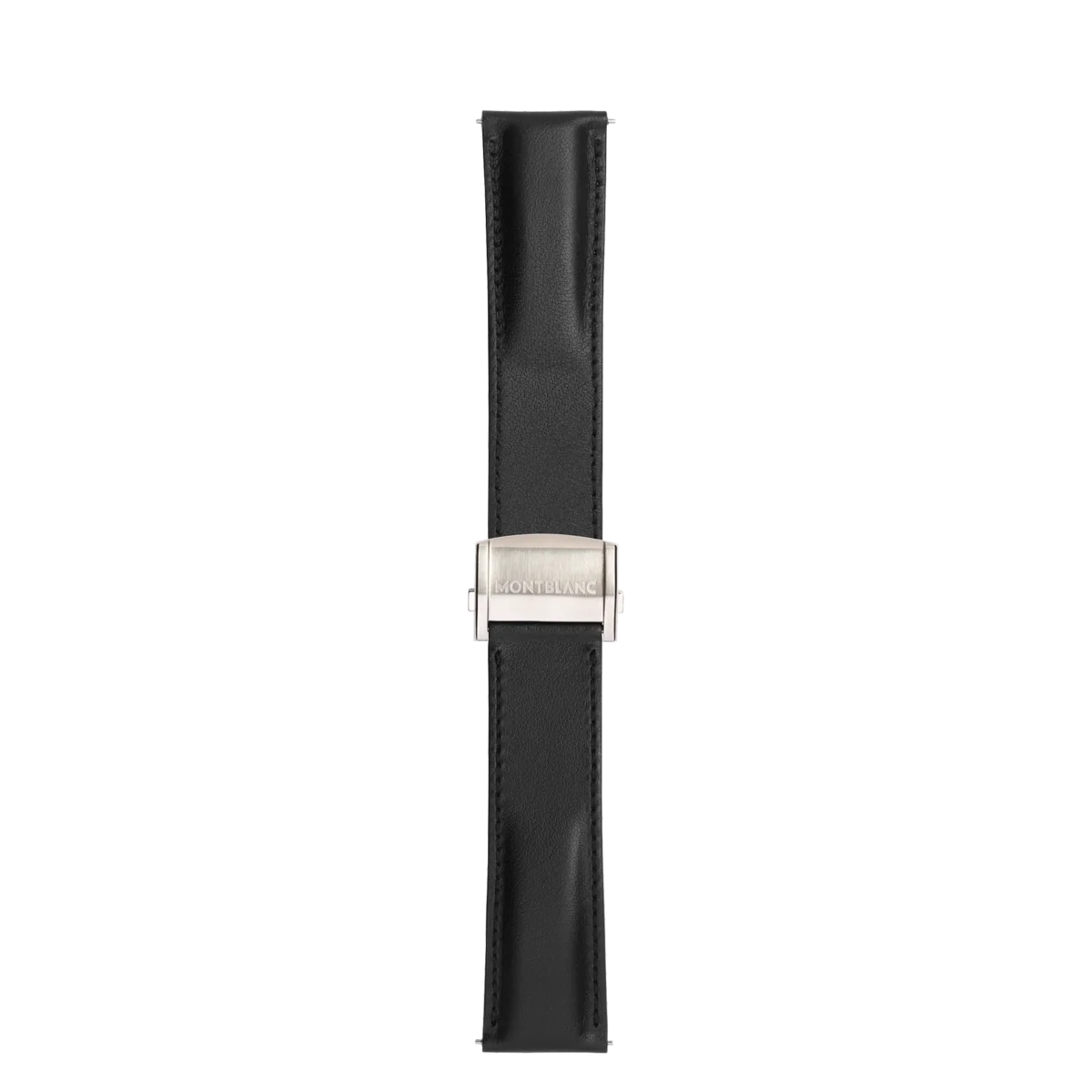 Bracelet en cuir de veau noir de 22 mm avec boucle réglable en acier inoxydable. Compatible avec toutes les montres connectées Montblanc Summit.
