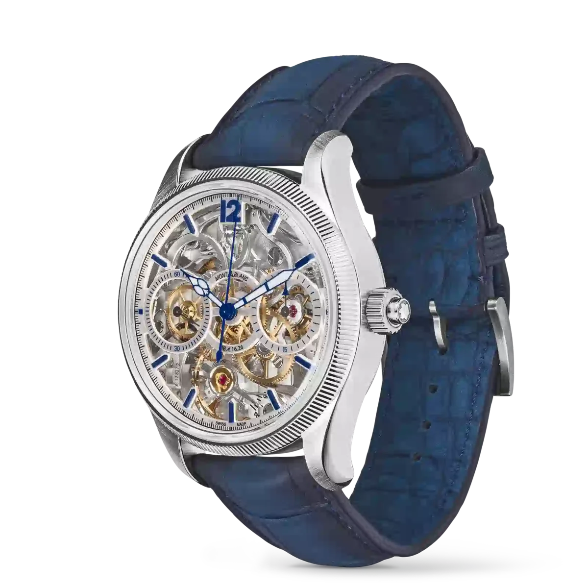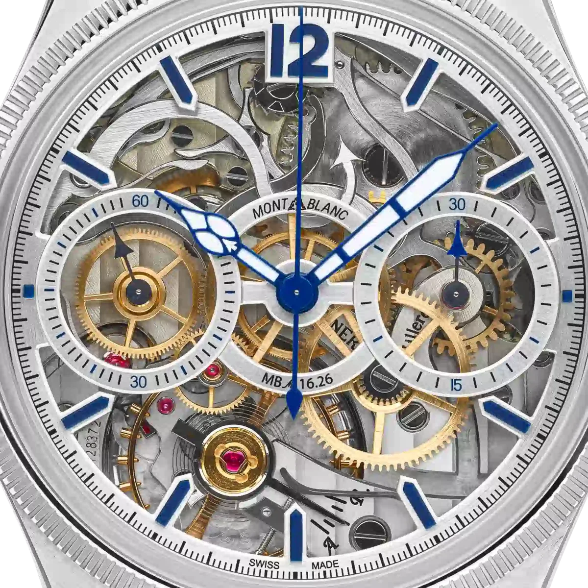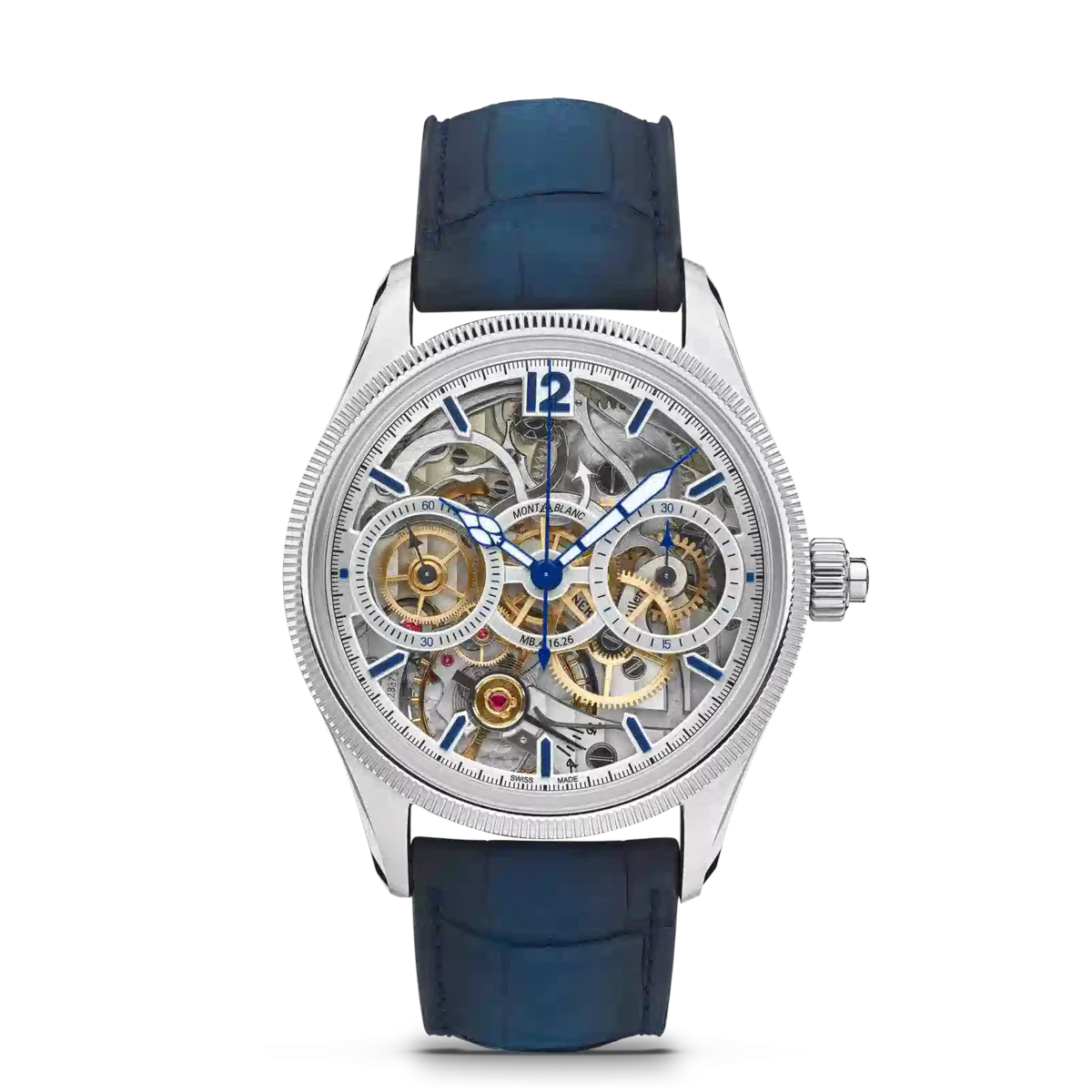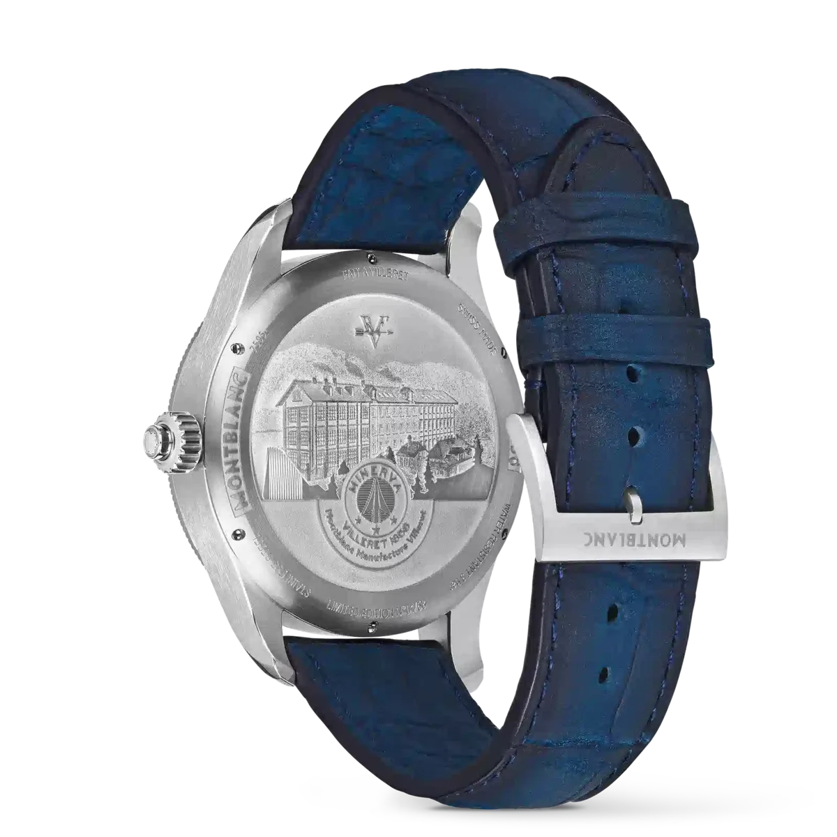 La Montblanc 1858 The Unveiled Secret Minerva Monopusher Chronograph Limited Edition offre une vue imprenable sur le calibre manufacture MB M16.29 de la Maison, qui a été inversé pour révéler toute la magie du mouvement chronographe. Retourner un mouvement semble simple, mais c’est un véritable exploit technique, car la direction des aiguilles doit également être inversée. Cette édition limitée à 58 exemplaires est présentée dans un boîtier en acier inoxydable de 43 mm avec une lunette cannelée en or blanc 750/1000 (18 carats) et dispose d’aiguilles et d’index bleus ainsi que d’un bracelet en cuir d’alligator bleu.
