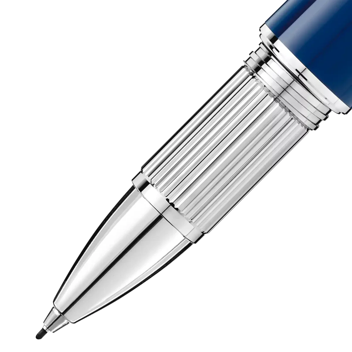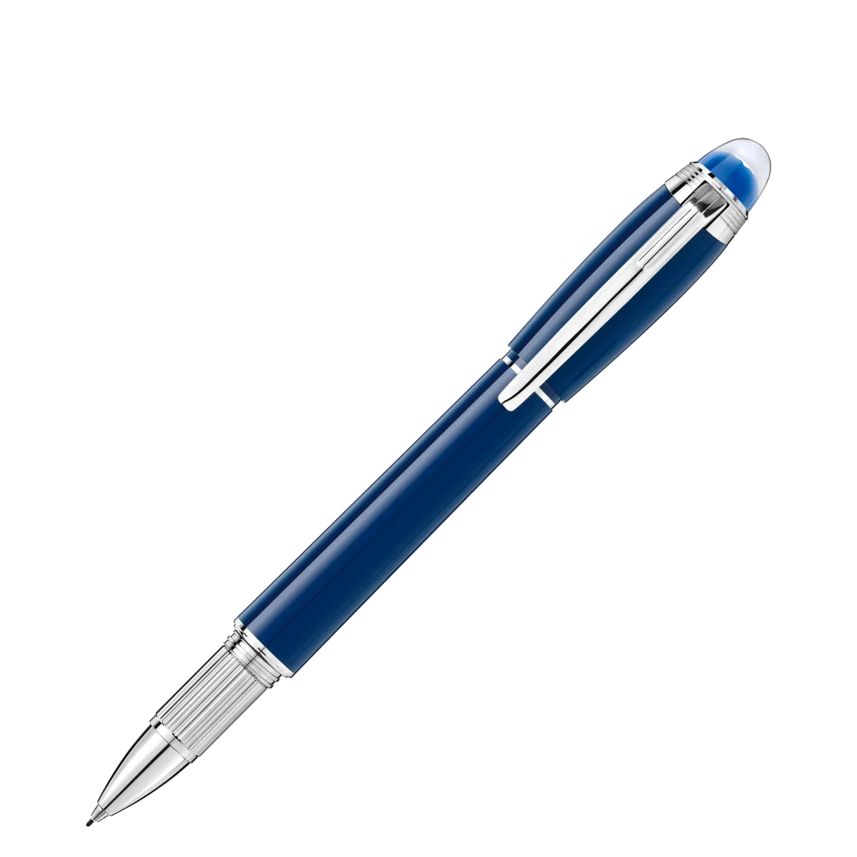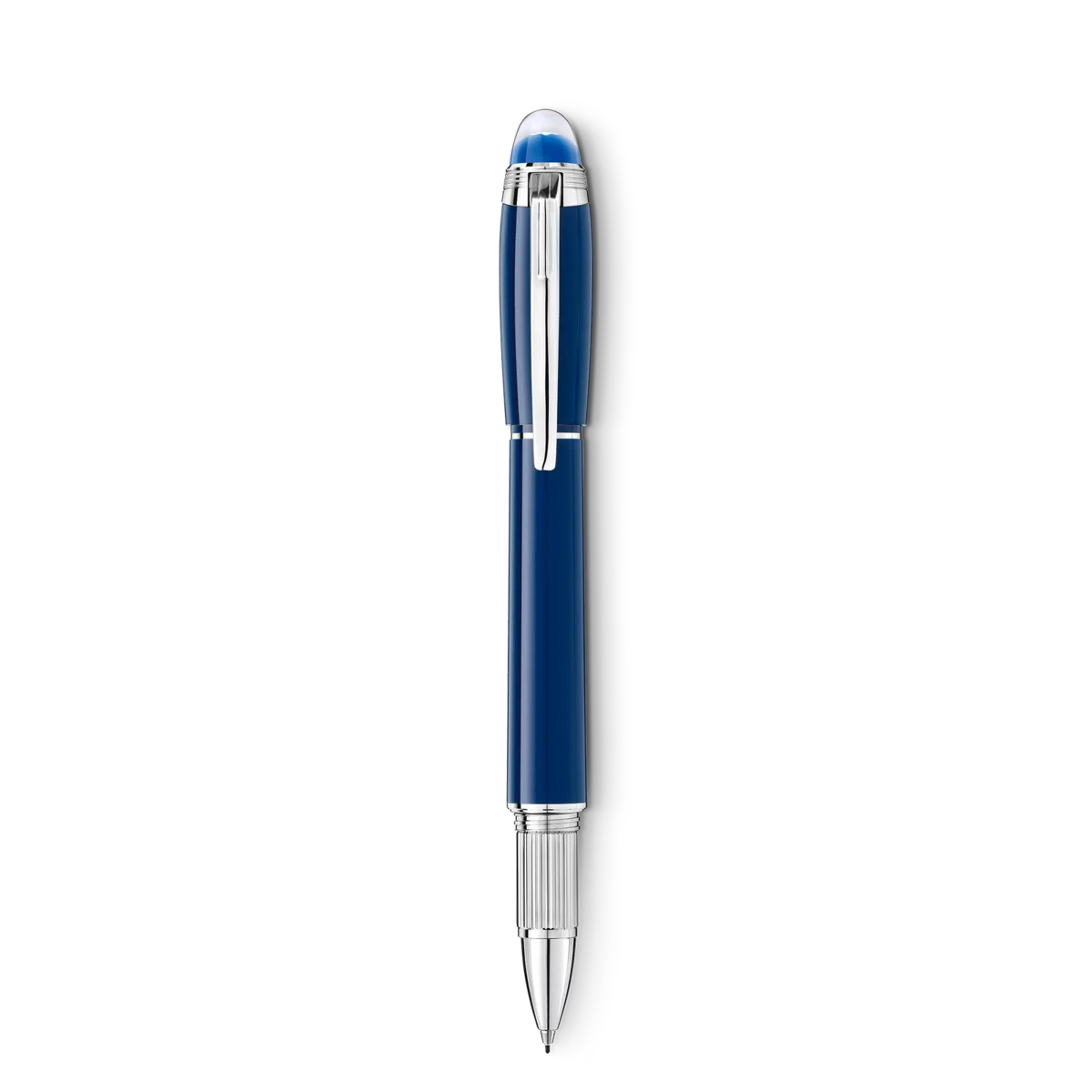 StarWalker Blue Planet, c’est marcher parmi les étoiles, explorer le cosmos et les galaxies lointaines, et prendre part à l’une des aventures les plus mystérieuses et les plus puissantes que l’humanité ait jamais entreprises : l’exploration spatiale. En zoomant sur notre planète Terre, nous nous inspirons de l’eau, source de vie. La technologie de l’emblème StarWalker se caractérise par un dôme bleu translucide surmonté d’une étoile, qui représente la Terre émergeant au-dessus de l’horizon lunaire vue depuis la Lune. Le fineliner StarWalker en résine précieuse est doté d’attributs plaqués platine et d’un corps et d’un capuchon en résine précieuse bleue.