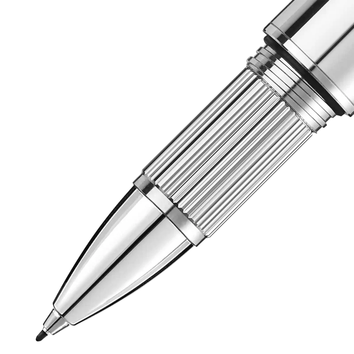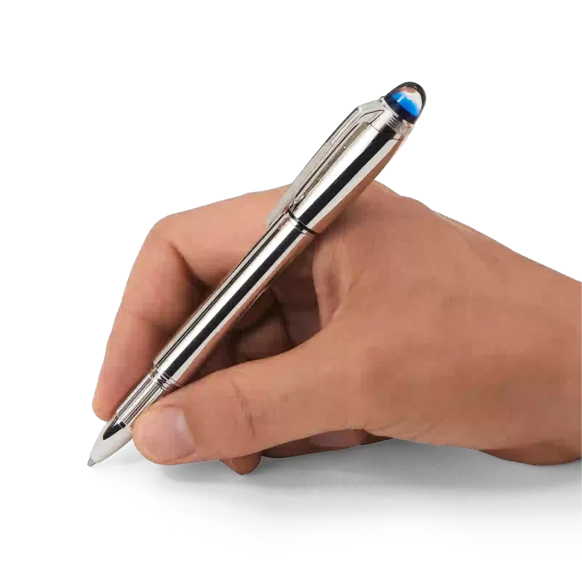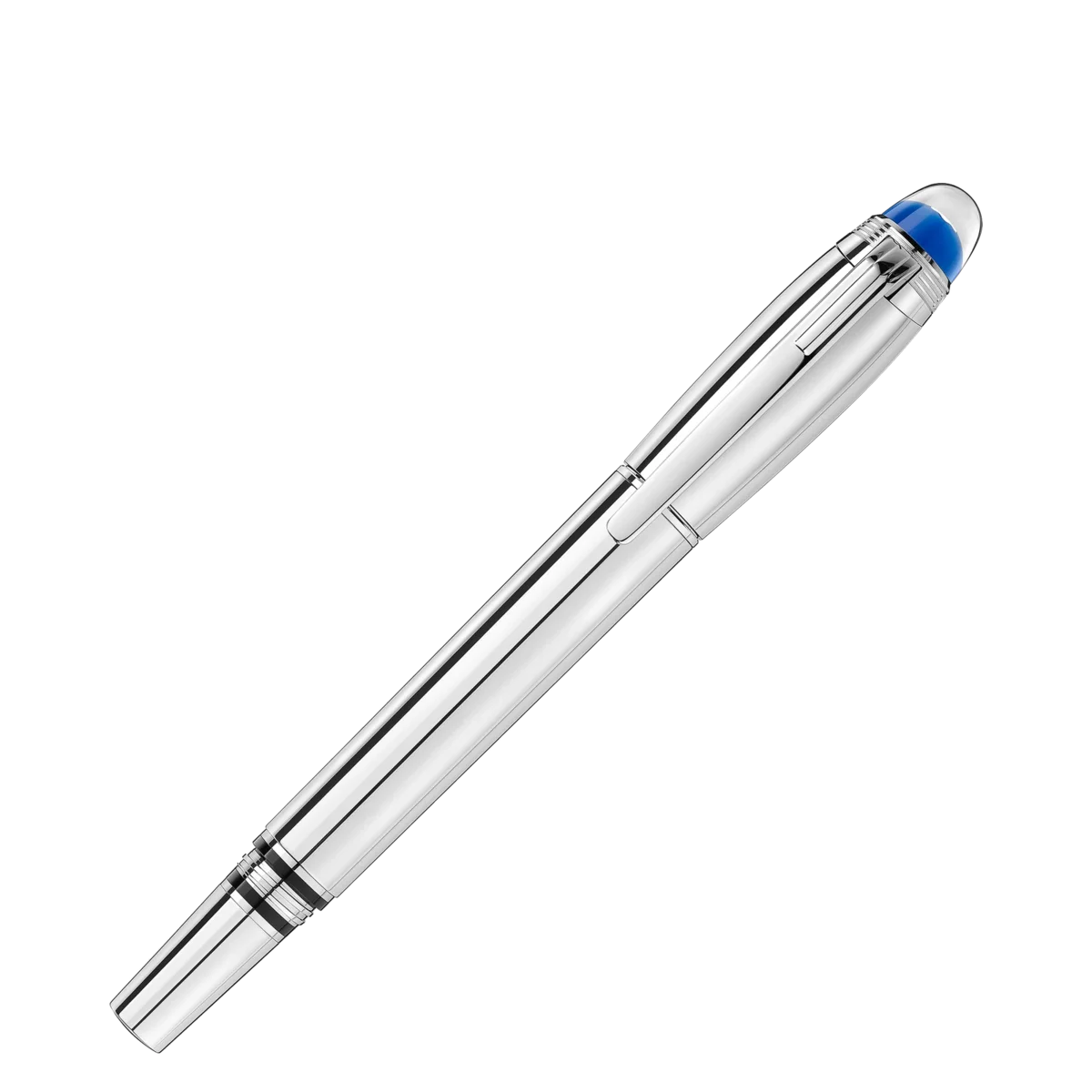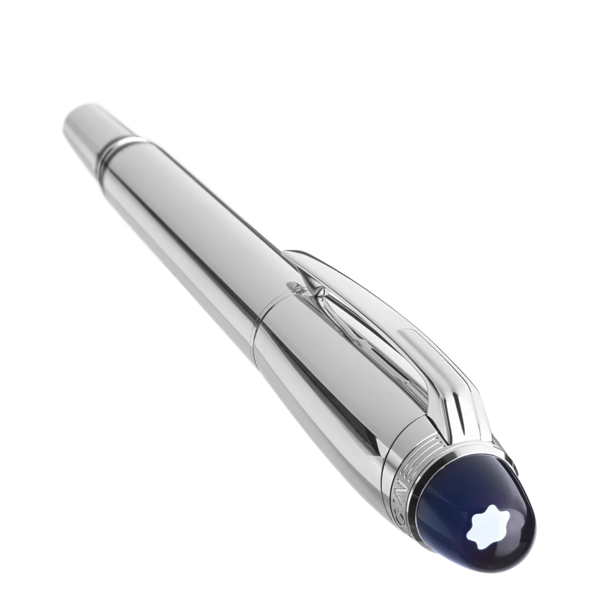 La nouvelle collection StarWalker évoque la marche parmi les étoiles. Elle évoque l’exploration du cosmos et des galaxies lointaines. Elle évoque la participation à l’une des aventures les plus mystérieuses et les plus puissantes de l’humanité : l’exploration spatiale. Le nouveau design de la collection célèbre l’émotion immense décrite par tous les voyageurs de l’espace lorsqu’ils voient notre planète bleue flotter dans l’immensité de l’espace. La technologie unique de l’emblème StarWalker comprend un dôme bleu translucide sous l’emblème Montblanc, qui rappelle la Terre émergeant au-dessus de l’horizon lunaire. Le StarWalker Metal est doté d’un capuchon, d’accessoires et d’un corps recouverts de platine. Numéro d’identification : MB132512 Poids physique : 50,28 g Dimensions : 135,4 mm * 14,9 mm