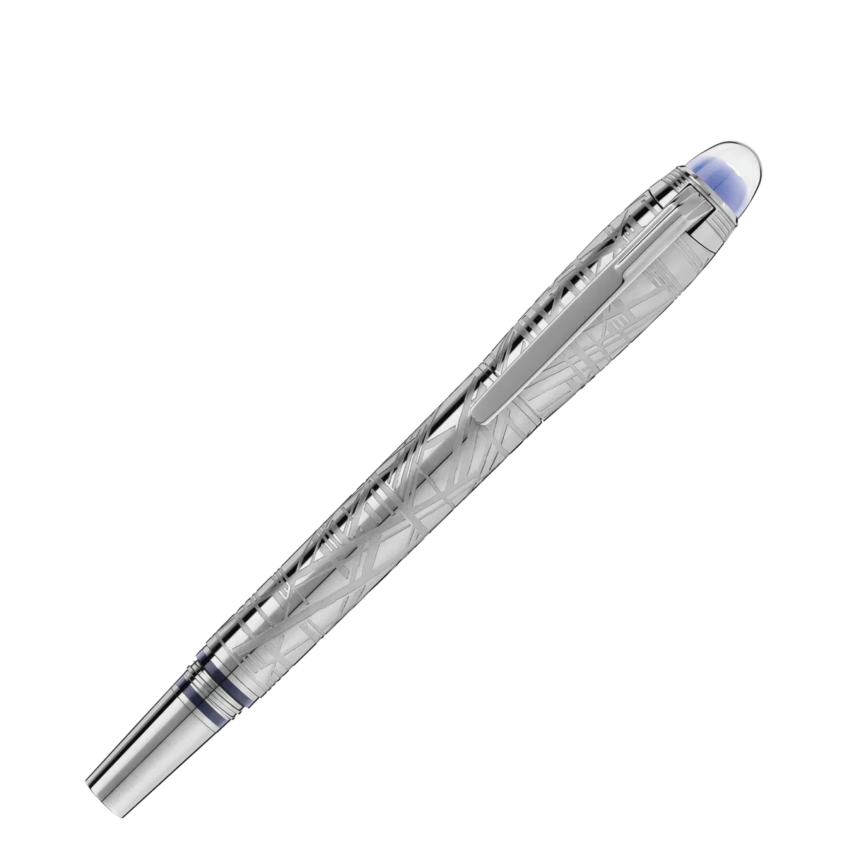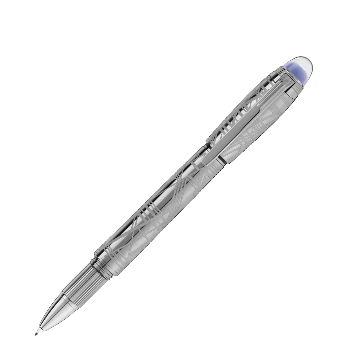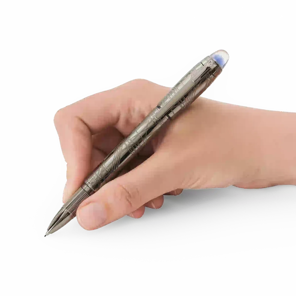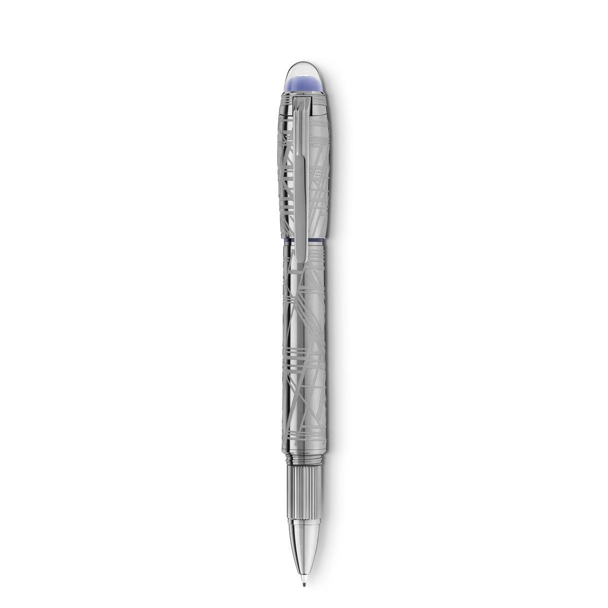 StarWalker SpaceBlue regarde au-delà de la planète Terre et se tourne vers les étoiles et la galaxie. Cette nouvelle collection StarWalker apporte un nouveau look au capuchon et au corps métalliques, avec un design qui rappelle les structures complexes du motif de Widmanstätten, l’une des créations les plus hypnotiques de la nature. Toutes les parties métalliques sont recouvertes de ruthénium foncé, accompagnées d’un sous-dôme bleu espace profond sur le dessus du capuchon, rappelant les teintes d’un ciel étoilé, sur lequel flotte l’emblème Montblanc.